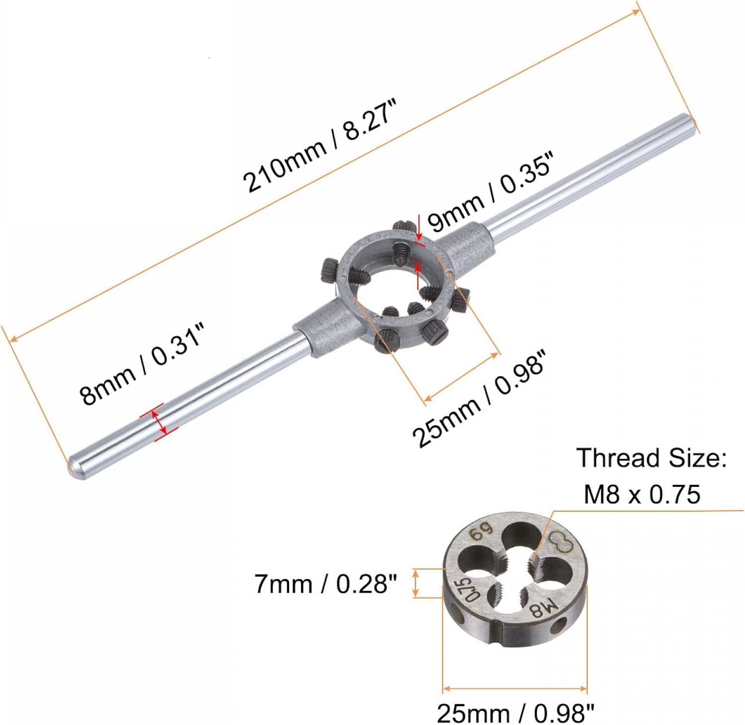 Uxcell Die Stock Handle Wrench Set, M8 X 0.75 Threading Round Die And 25Mm (Fit