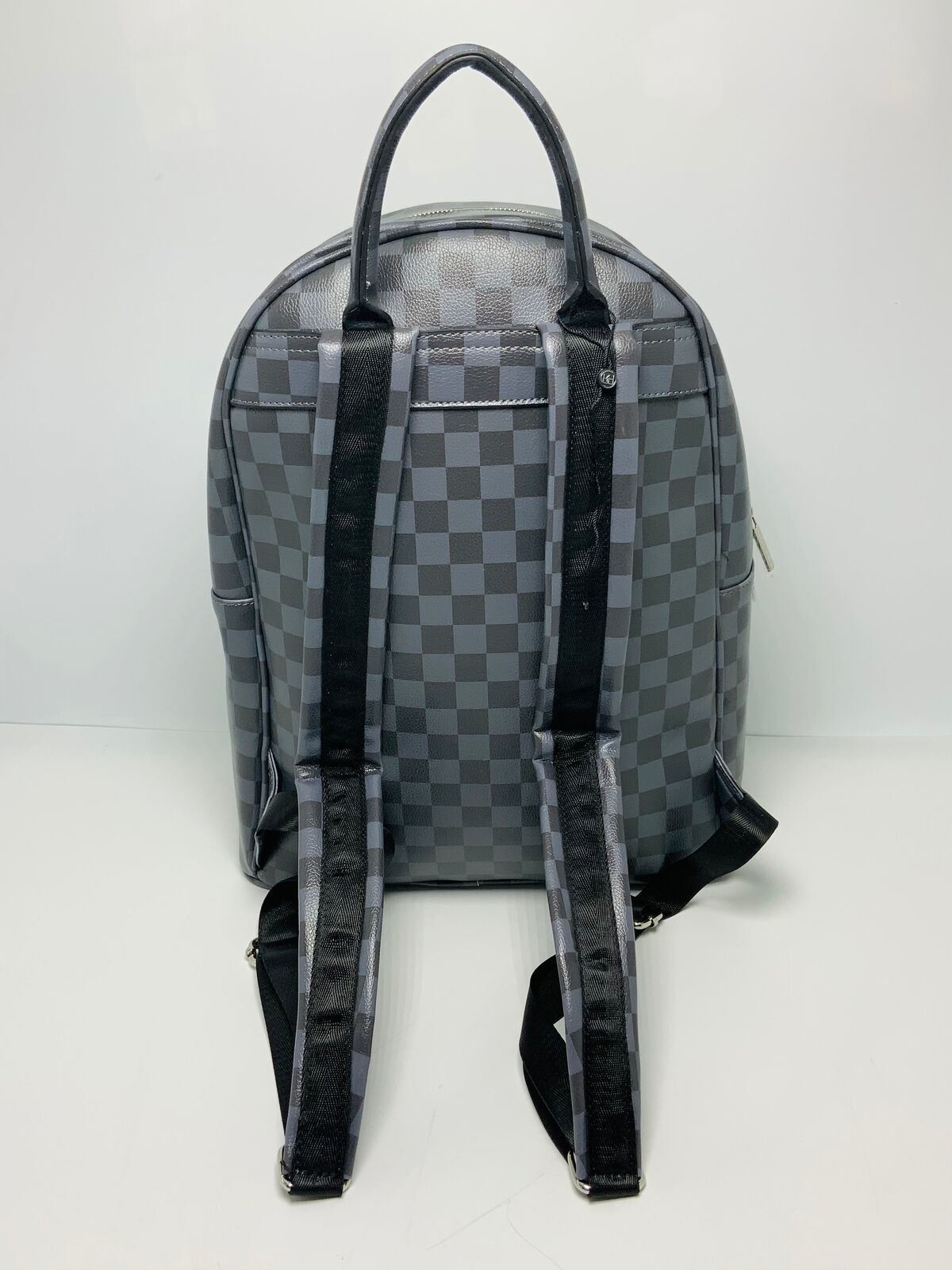 PU backpack Large main compartment Handle on top Zipper closure Inside pocket Adjustable straps 12"w x 15.5"h x 6"d Designed in NYC