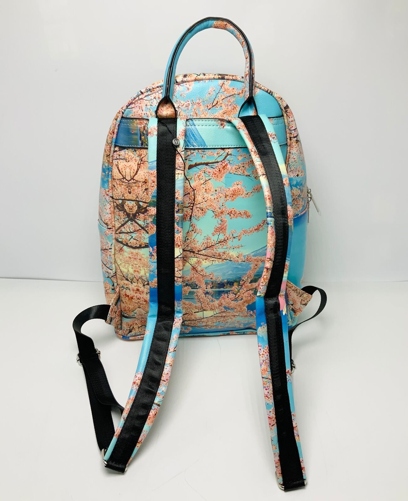 PU backpack Large main compartment Handle on top Zipper closure Inside pocket Adjustable straps 12"w x 15.5"h x 6"d Designed in NYC