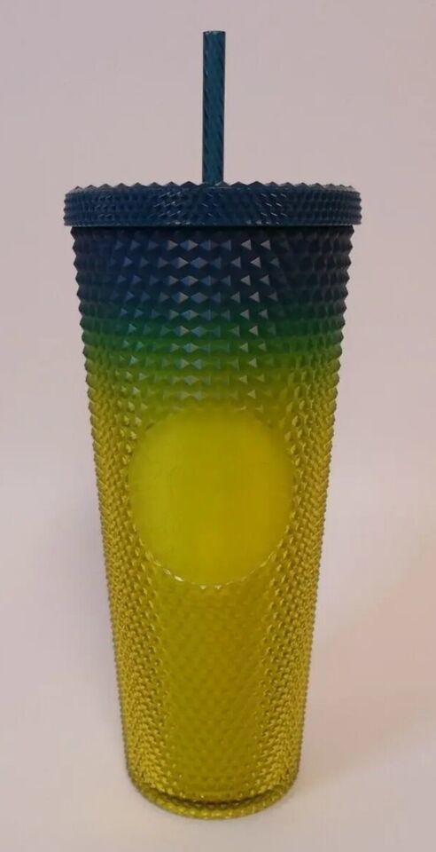 Starbucks Fall 2023 Gradient Lemon Yellow Blue Studded Venti 24 oz. Cold Tumbler