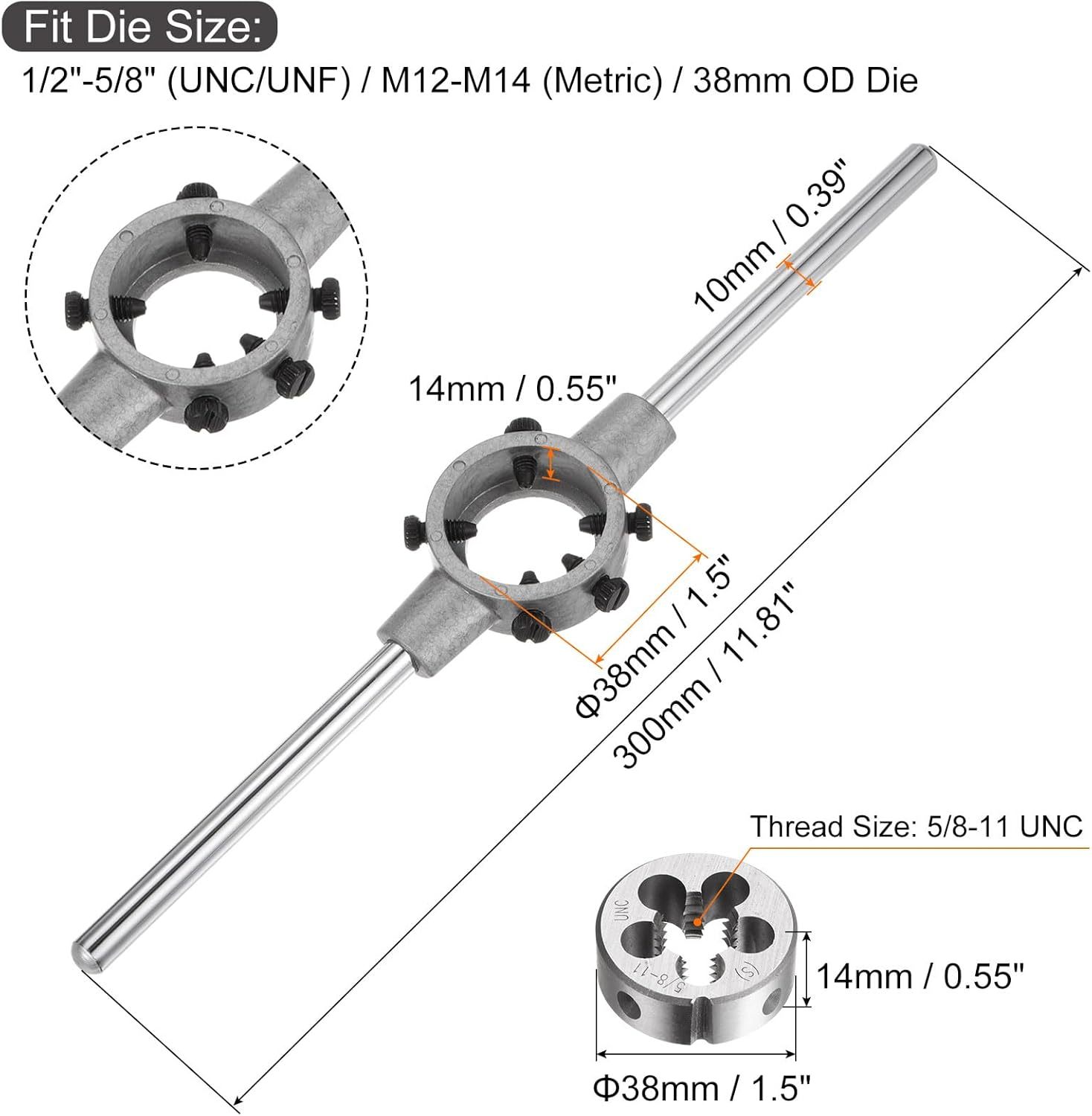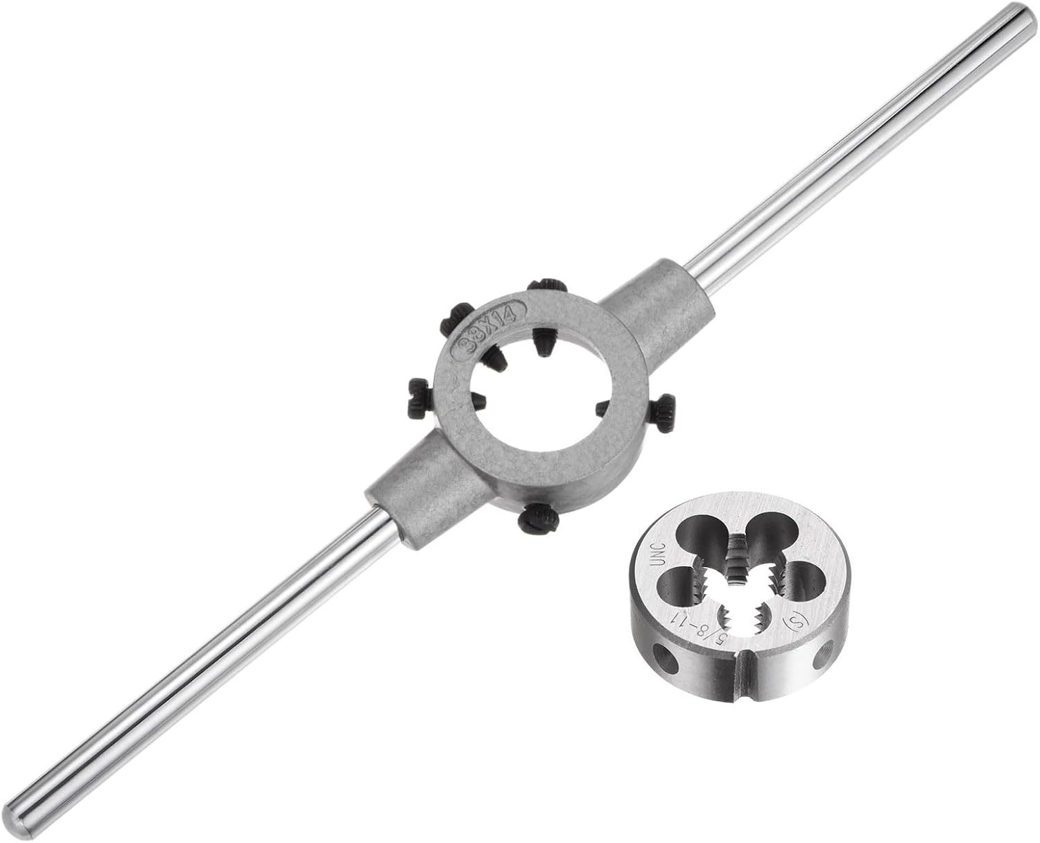 Uxcell Die Stock Handle Wrench Set, 5/8-11 Unc Round Die And 38Mm Die Holder