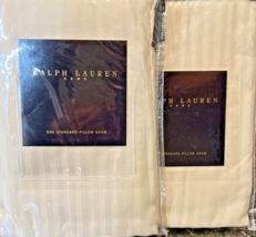 New Vtg 2 Ralph Lauren Hallowell Stripe Panne Standard Shams Cream Rare Italy