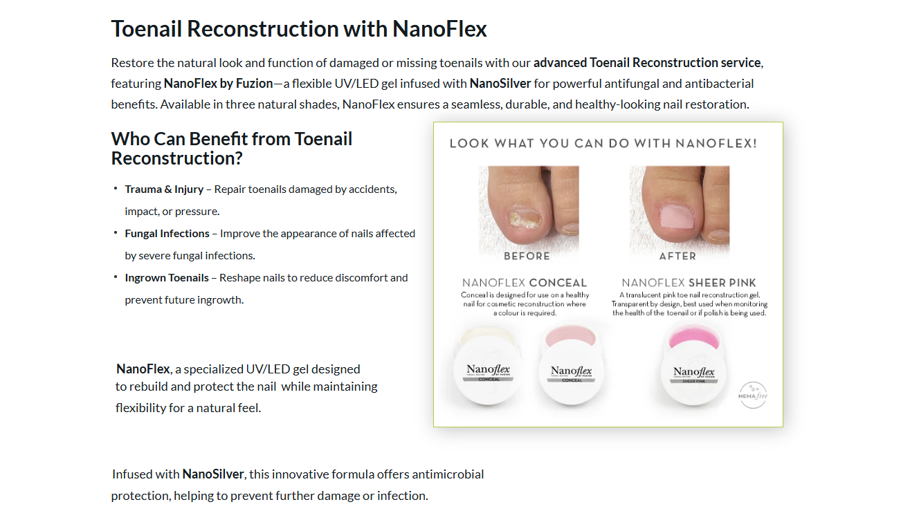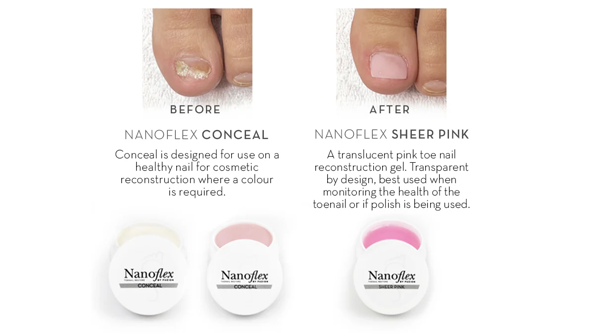 NanoFlex by Fuzion is a UV/LED Gel designed for restoring damaged toenails.