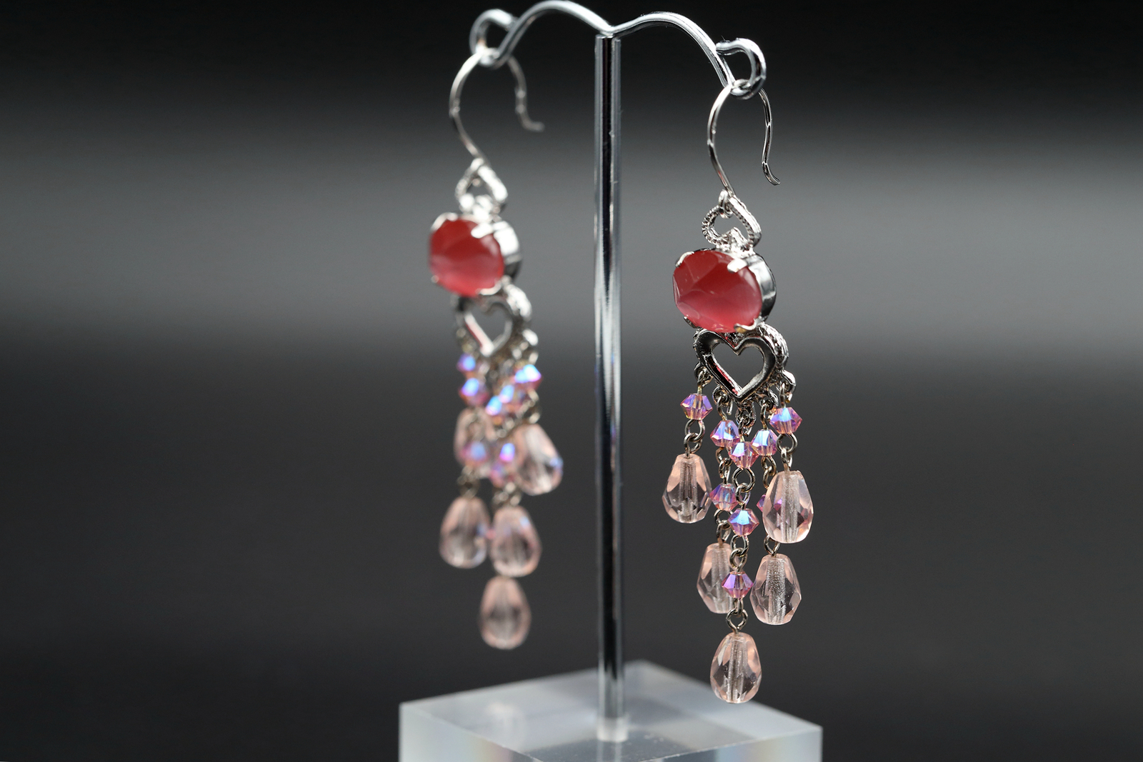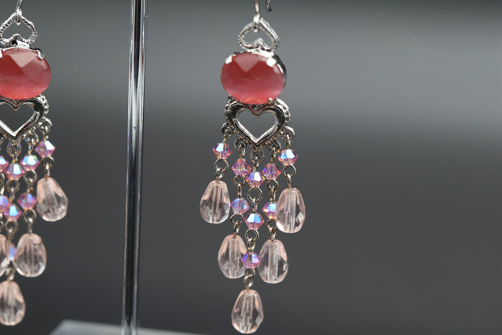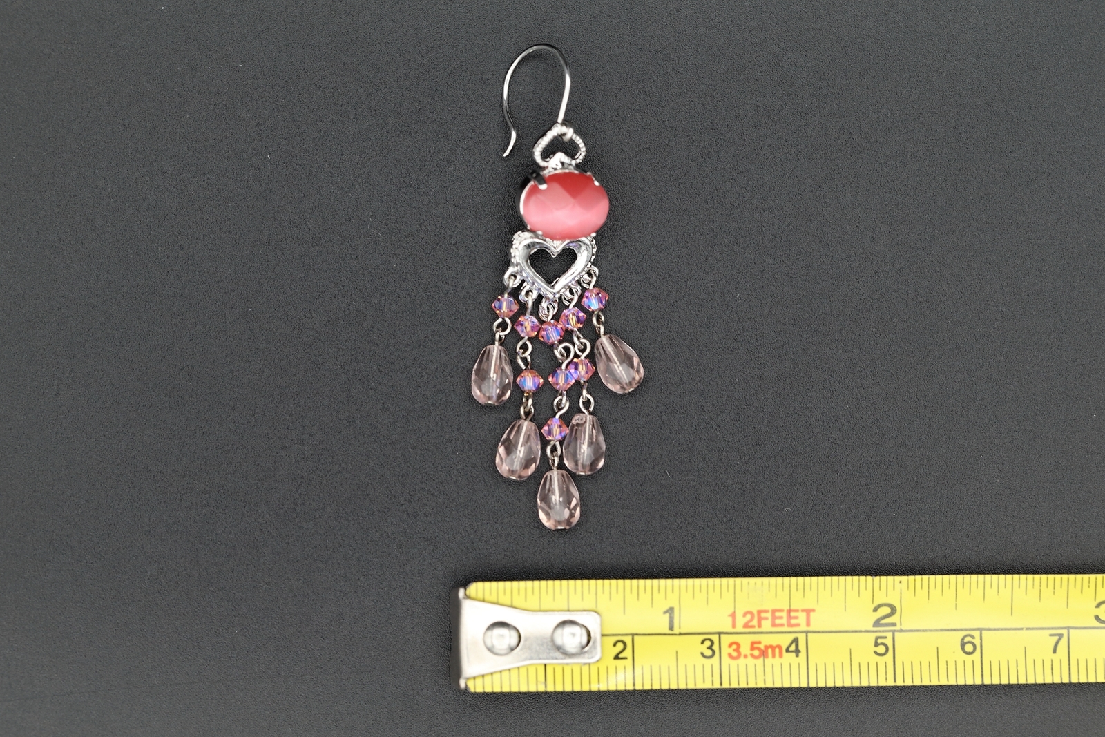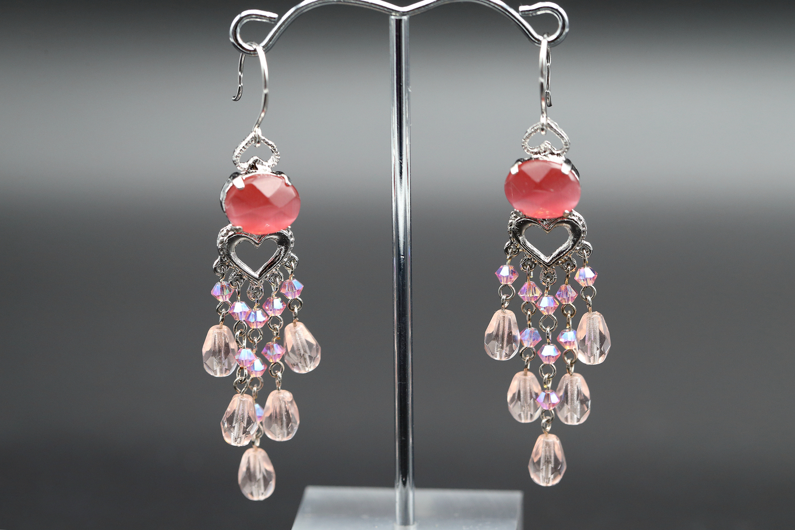 Jewdi Pink Czech Beads Synthetic Cat's Eye Crystal Handmade Earrings (E06S072)