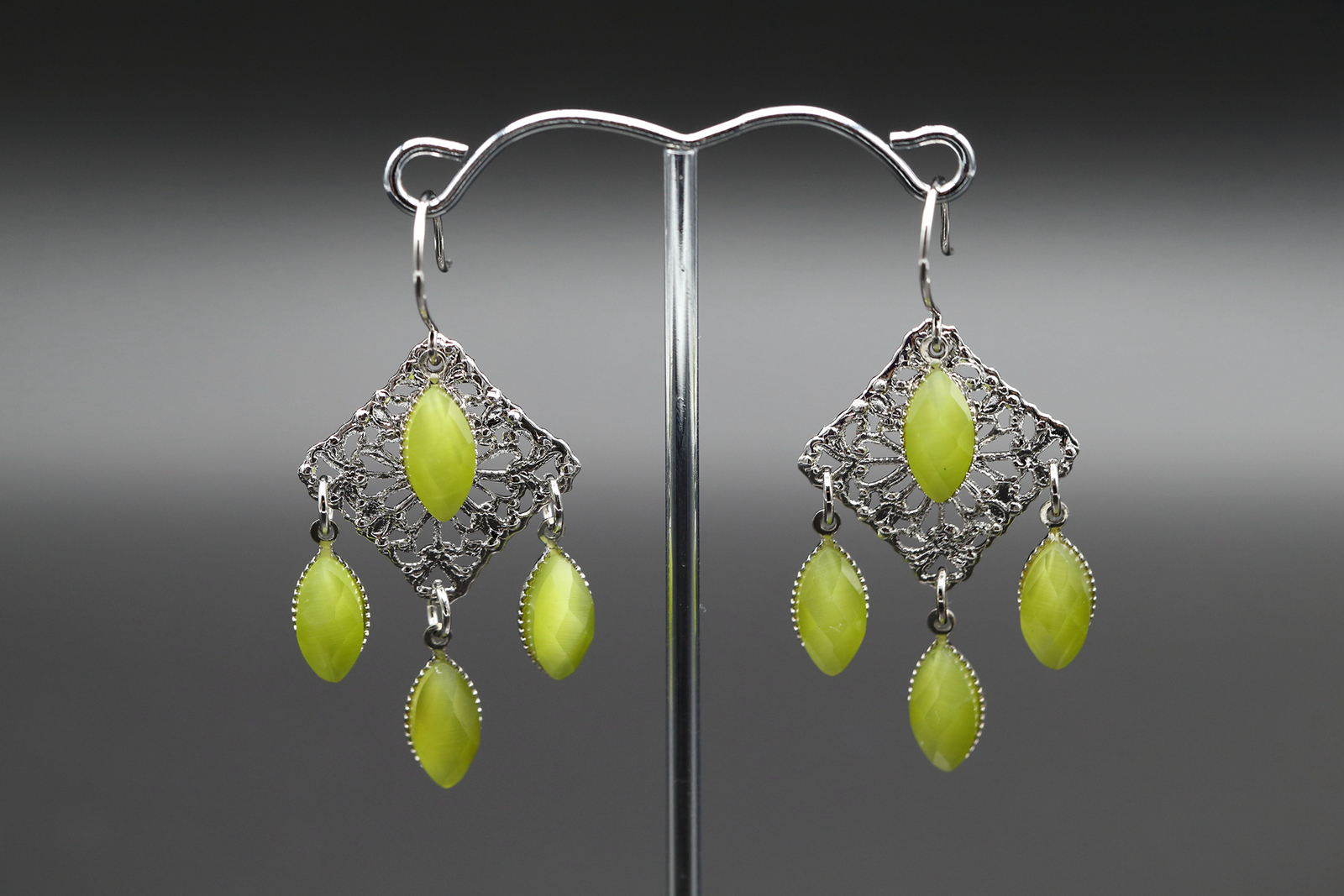 Jewdi Green Synthetic Cat's Eye Handmade Earrings (E06S076)
