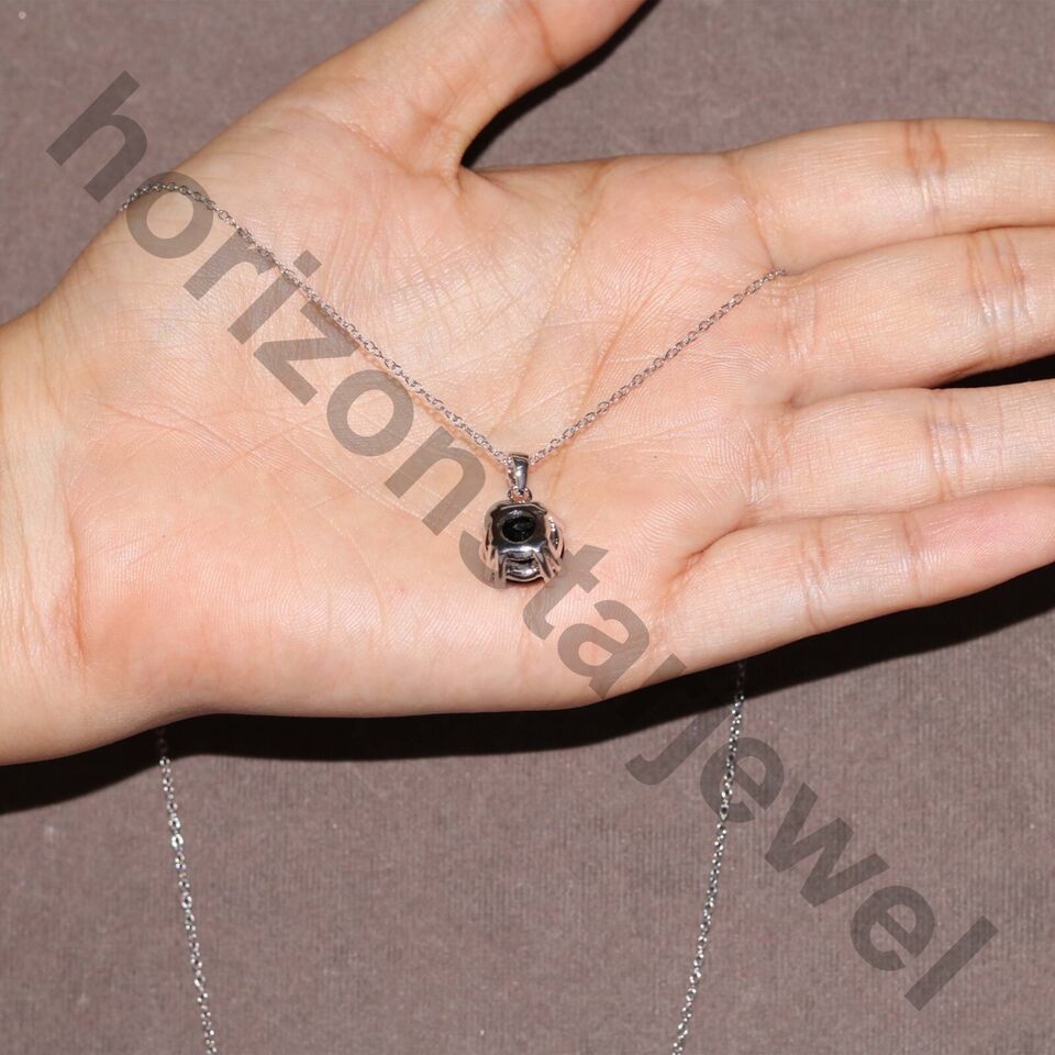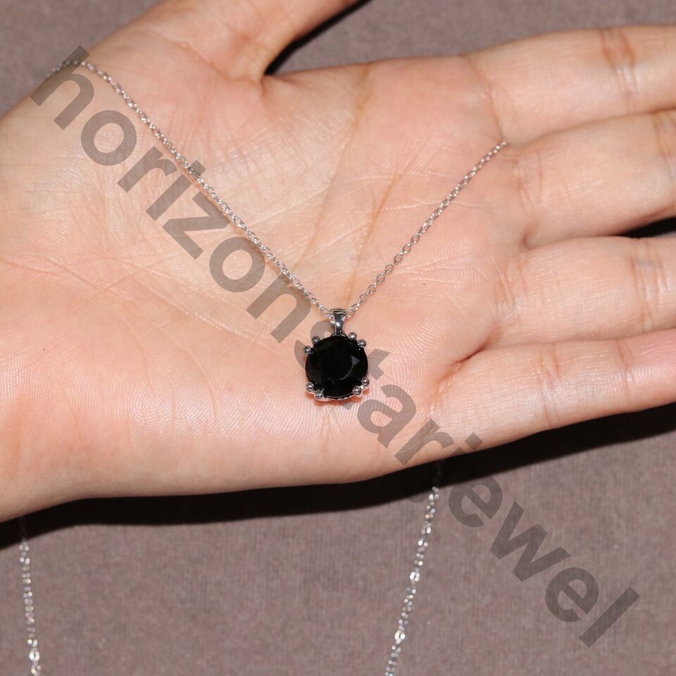 10 MM Round Created Black Spinel 14K White Gold Plated Solitaire Necklace 18"