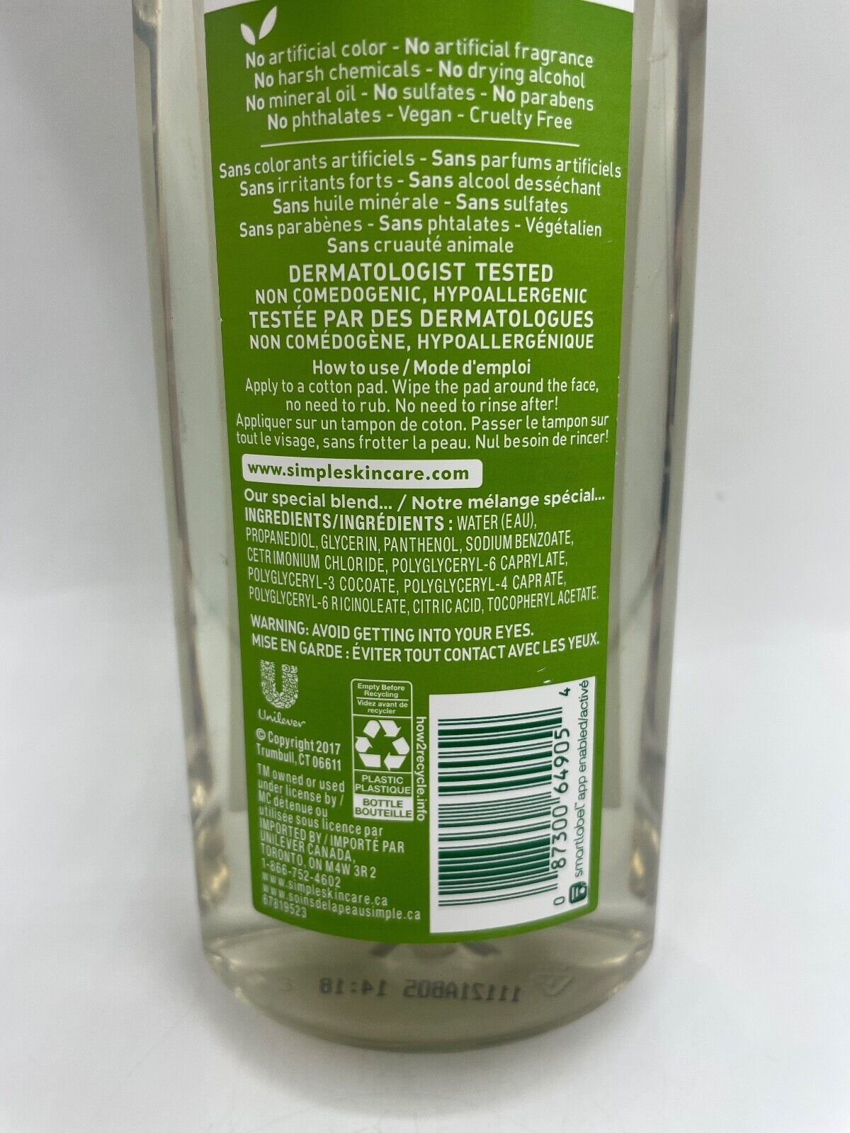 Simple Micellar Cleansing Water 13.5 oz /400ml Kind to Skin Bs263