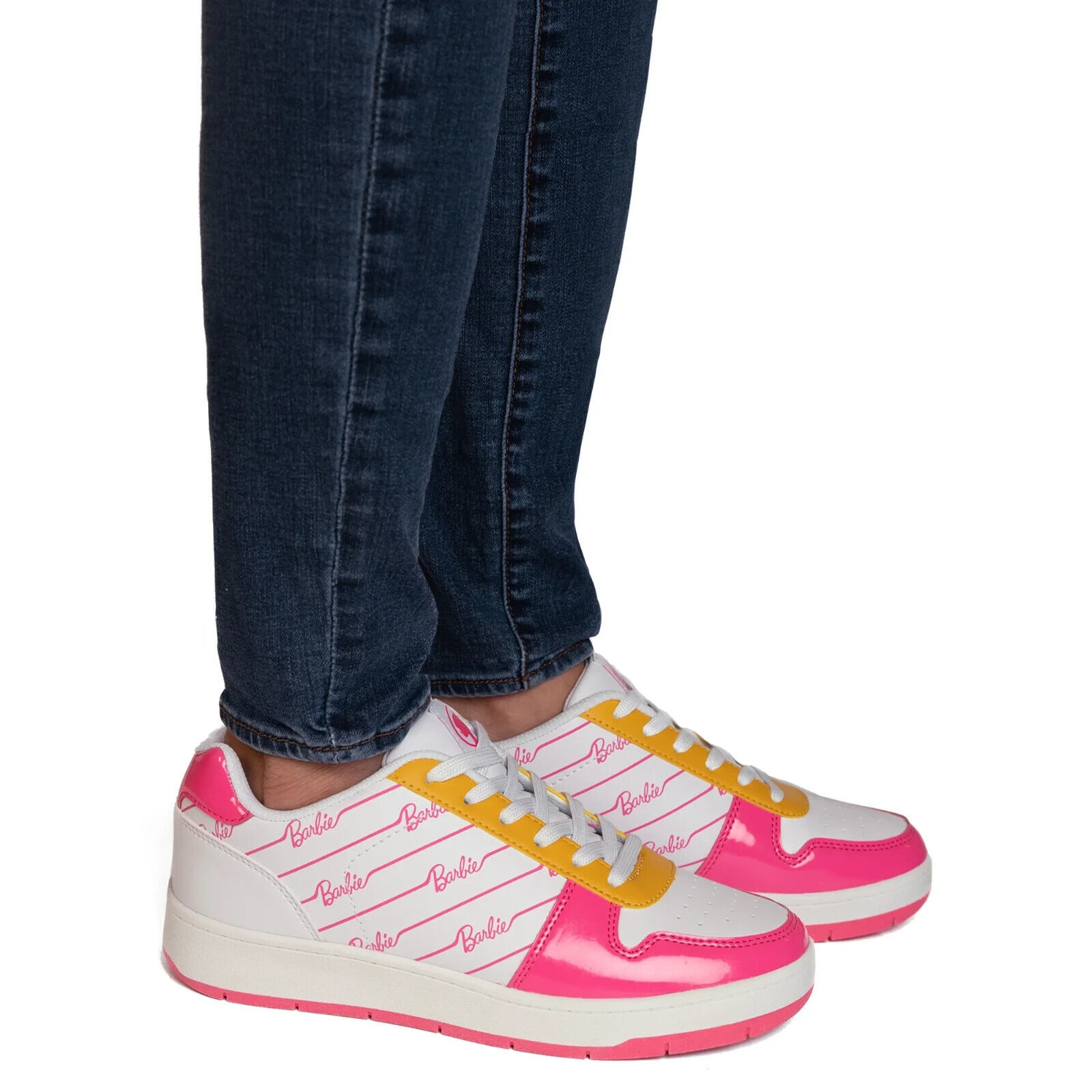 Barbie by Mattel Women's Casual Court Sneaker Shoe, Pink/White Size 11