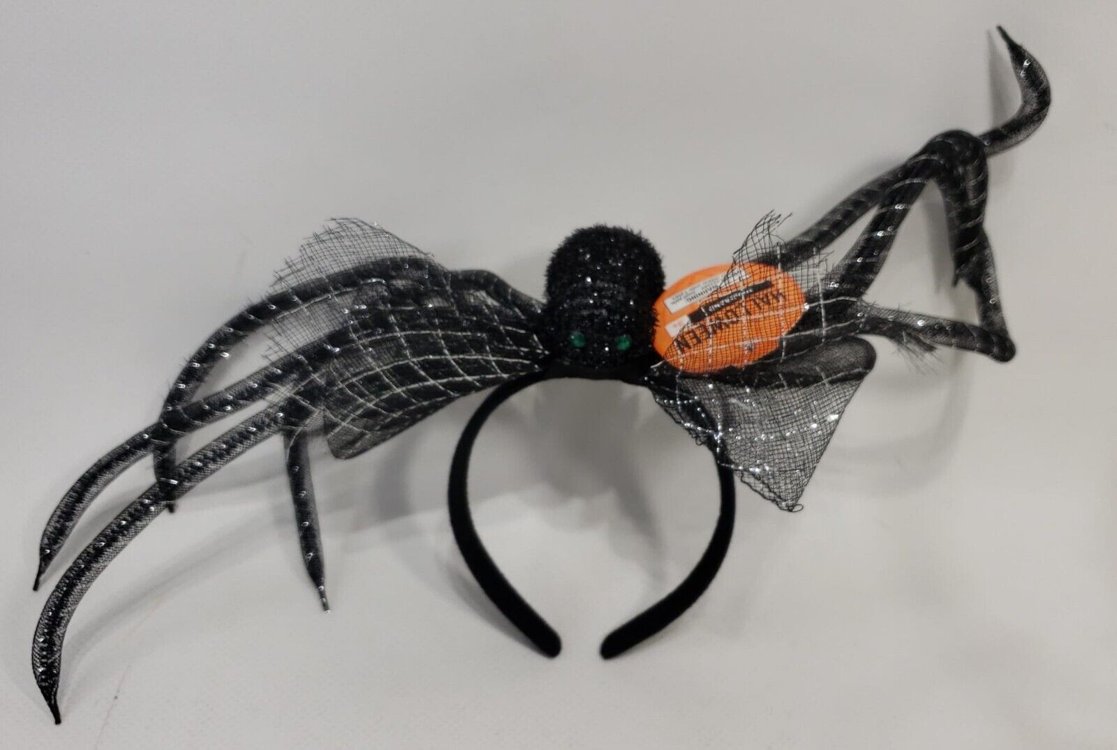 Get into the Halloween spirit with this Happy Halloween Spider Wrapped Headband in black.