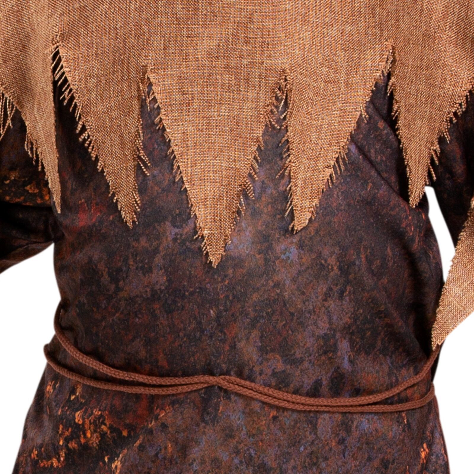 Sleeves: Long with rope accent and jagged burlap cuffs