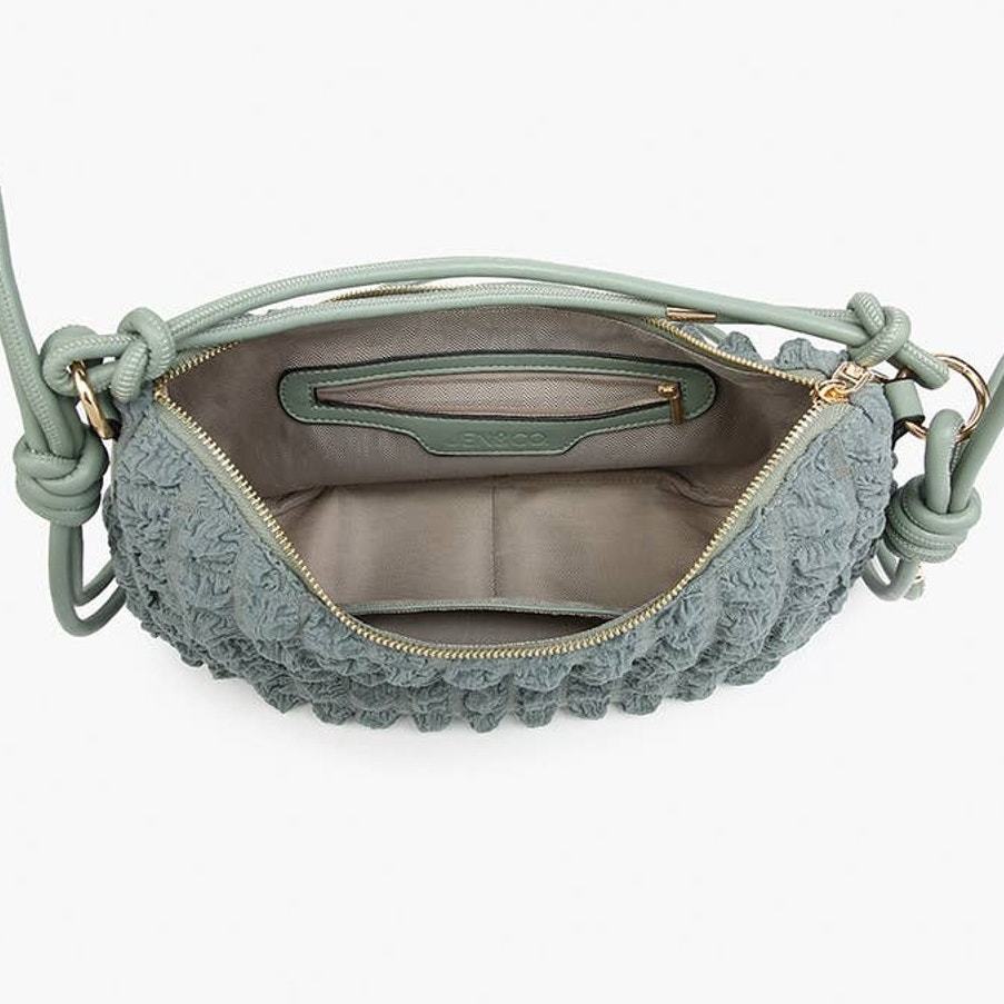 The Nelly Soft Quilted Crossbody is a stylish and functional accessory. Its puffy quilted design adds a soft and luxurious touch, making it a standout piece. The top zip closure ensures the security of your belongings, while the knotted crossbody strap and knotted handle with metal accent add a unique flair. This crossbody bag is spacious enough for everyday essentials and is perfect for adding a fashionable statement to your ensemble.