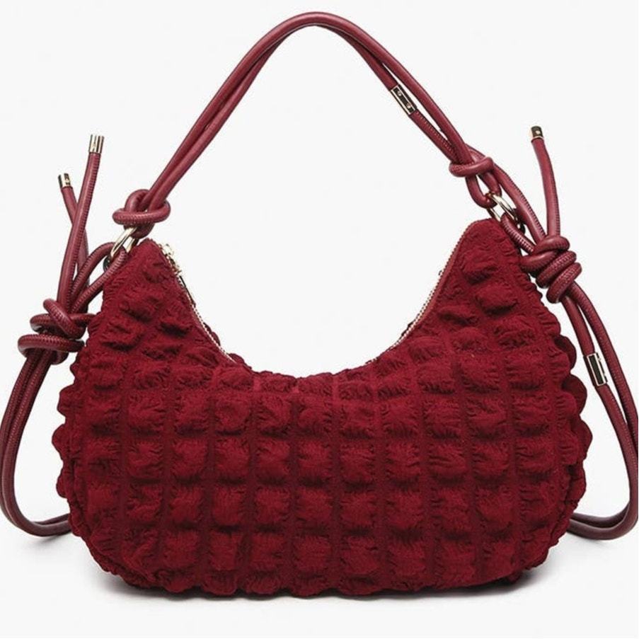 Nelly Quilted Puffy Shoulder Crossbody Bag with Knotted Strap Wine