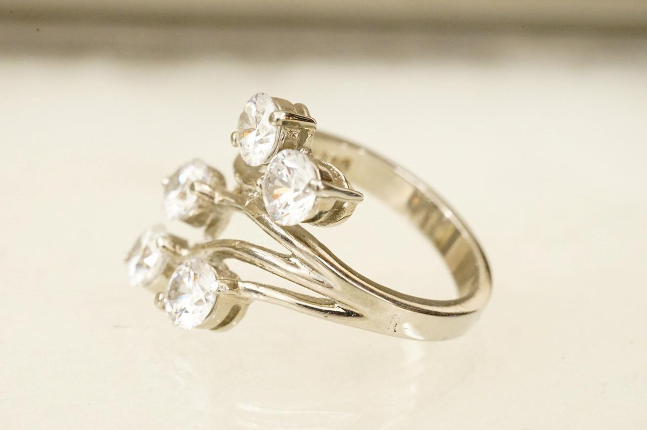 Costume Jewelry TK316 Stainless Silver Tone CZ Rhinestone Cocktail Ring Size 7. Wrap style with 5 bright 5mm rhinestones.