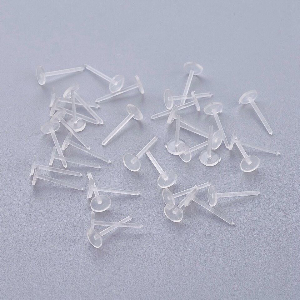 Add a touch of elegance to your earring designs with these plastic earring post cup or flat sets. Made with hypo-allergenic material, these earrings are perfect for those with sensitive skin. The translucent color and size of 12MM x 3MM make them suitable for any occasion and outfit. These earring findings are perfect for those who love crafting and jewelry making. They come with free plum earring backs for added convenience. Get creative and design unique jewelry pieces with these versatile plastic earring post cup or flat sets.