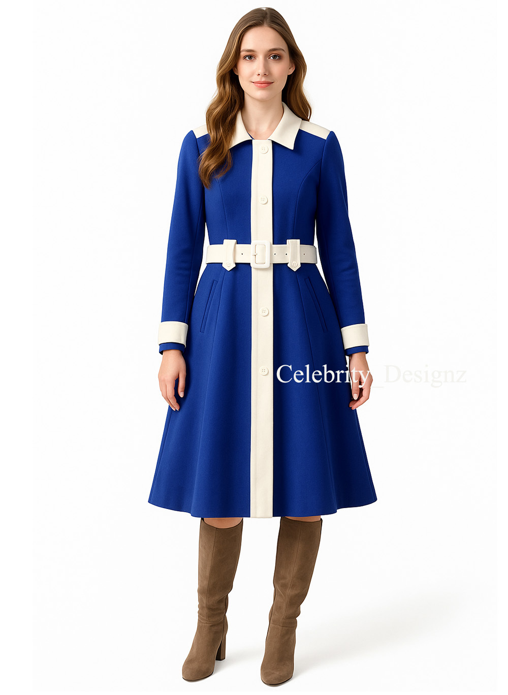Celebrity Style Amal Clooney Inspired Blue Two-toned Winter Wool Winter Coat