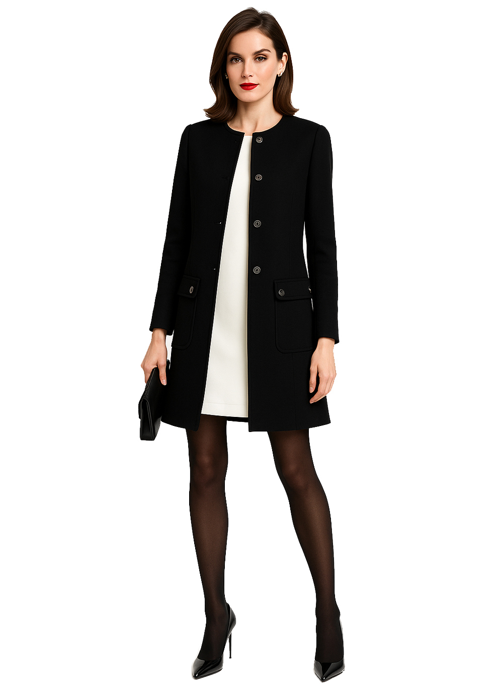 Queen Letizia Inspired Collarless Mid-Length Cocoon Coat in Black 10 12 14 AUS