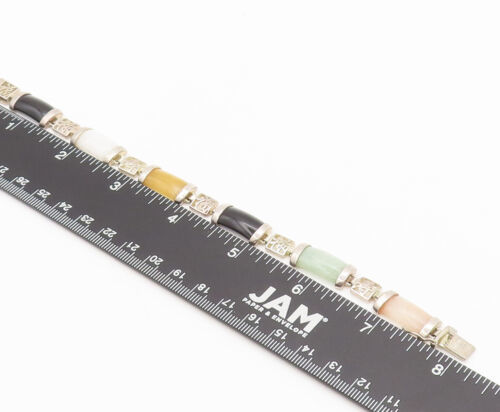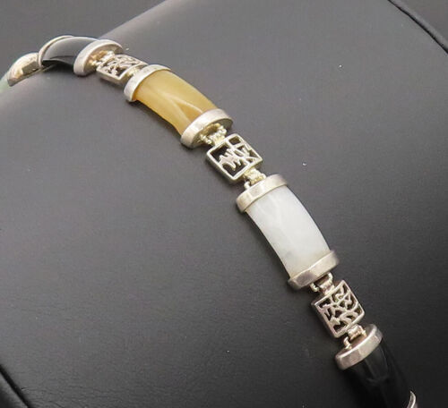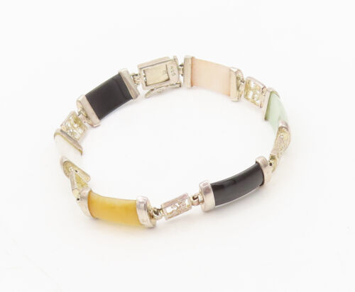 925 Sterling Silver - Vintage Multi Color Onyx Cutout Link Bracelet - BT10072