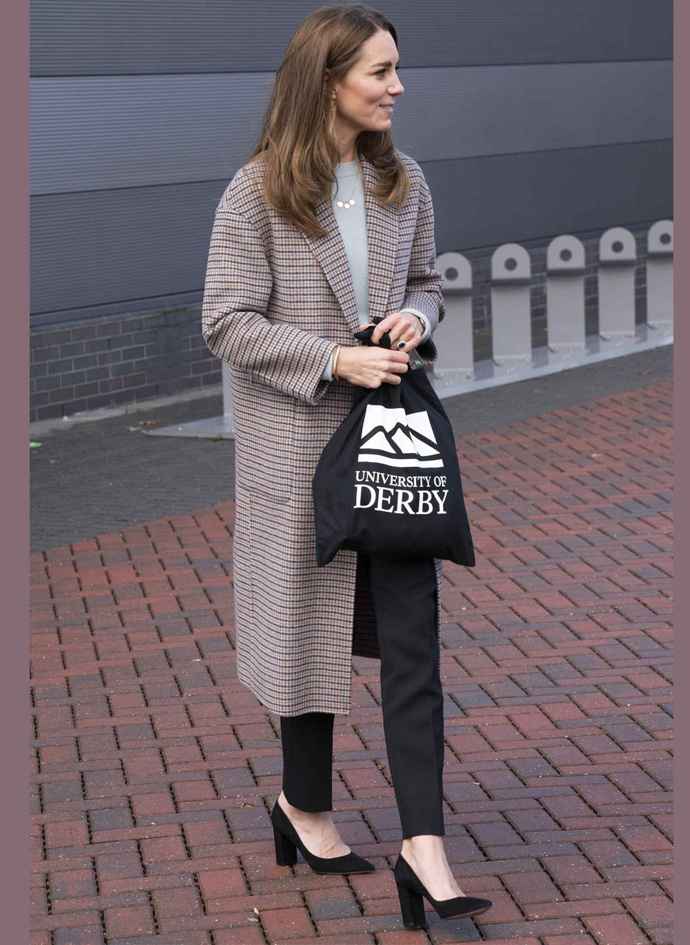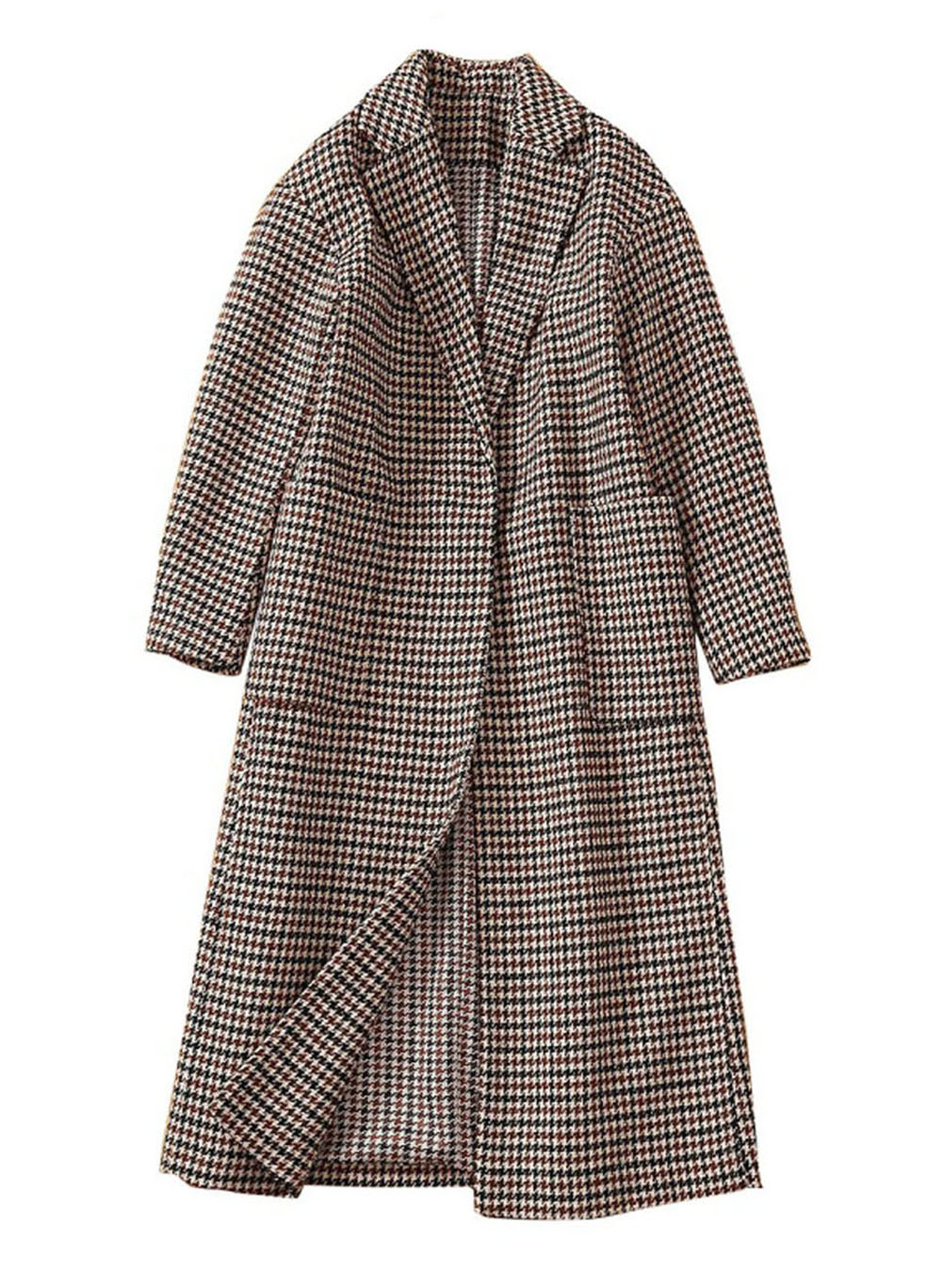 Kate Middleton Inspired Classic Beige Checkered Coat with Straight Cut and Lapel
