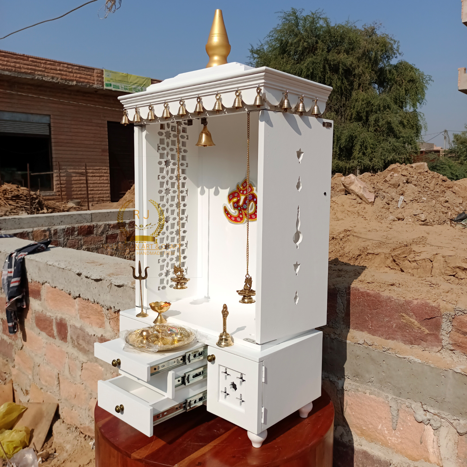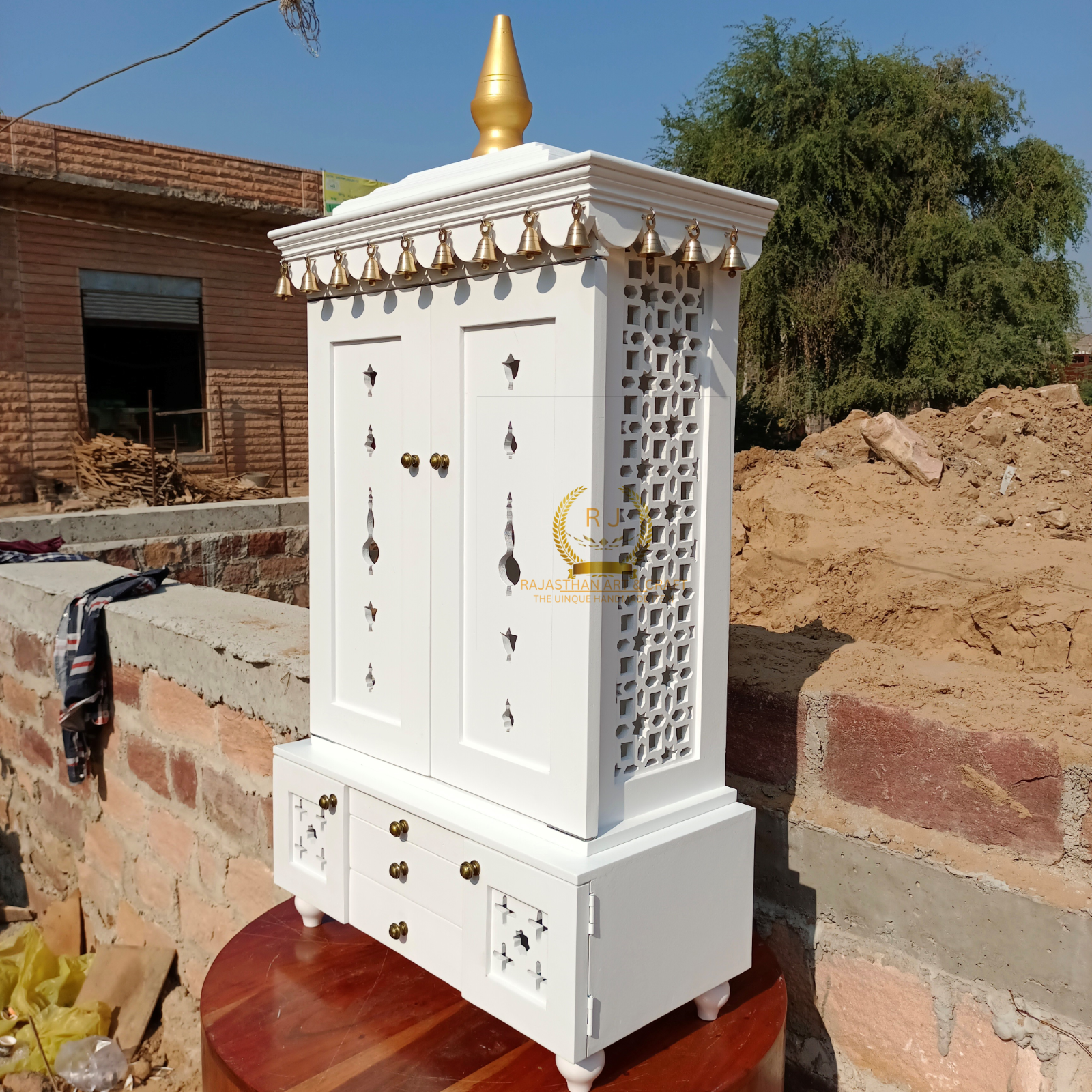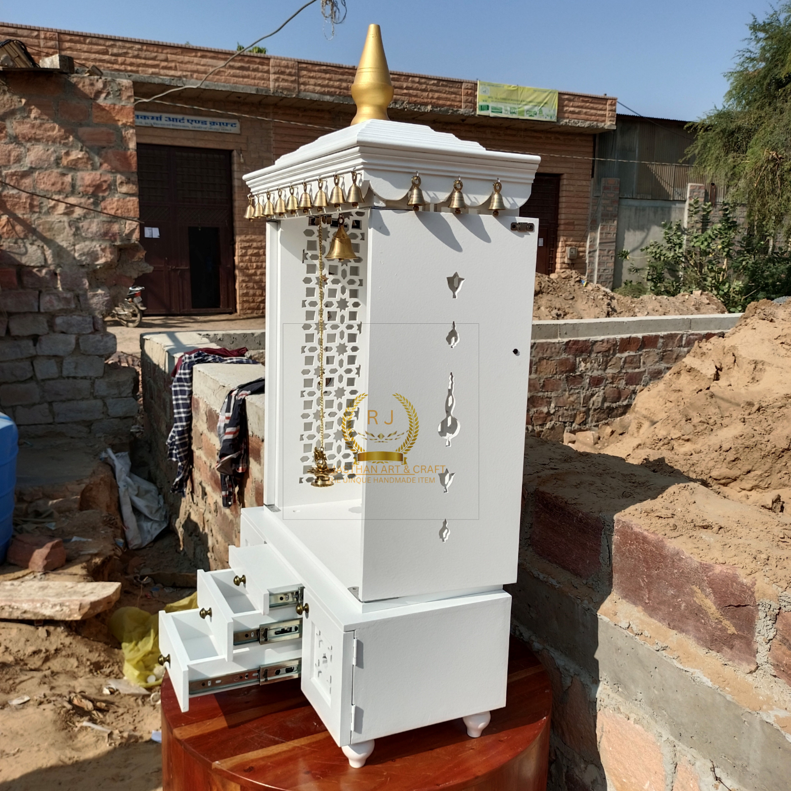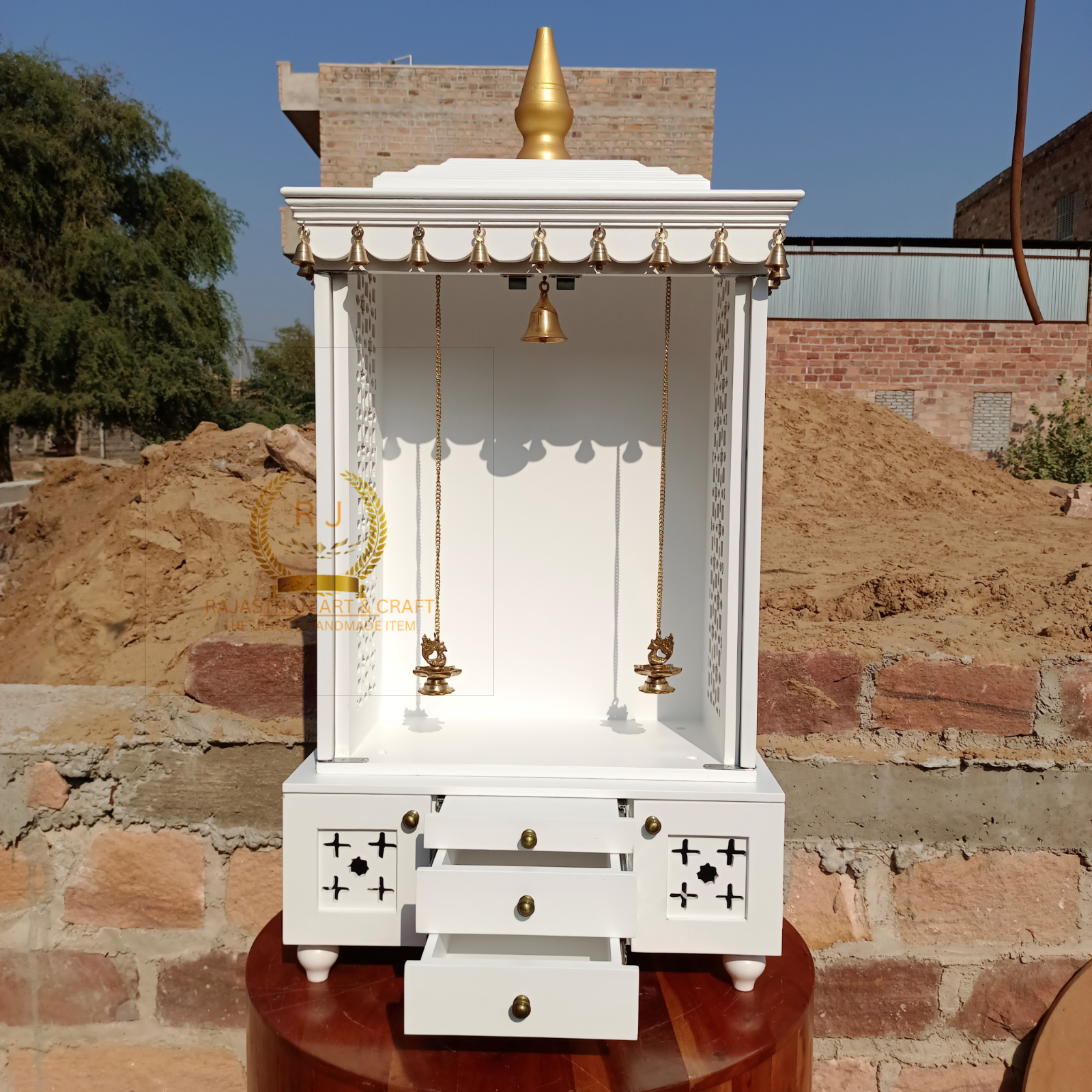 Wooden Temple Mandir White + Gold Finished Beautiful Handcrafted pooja mandir