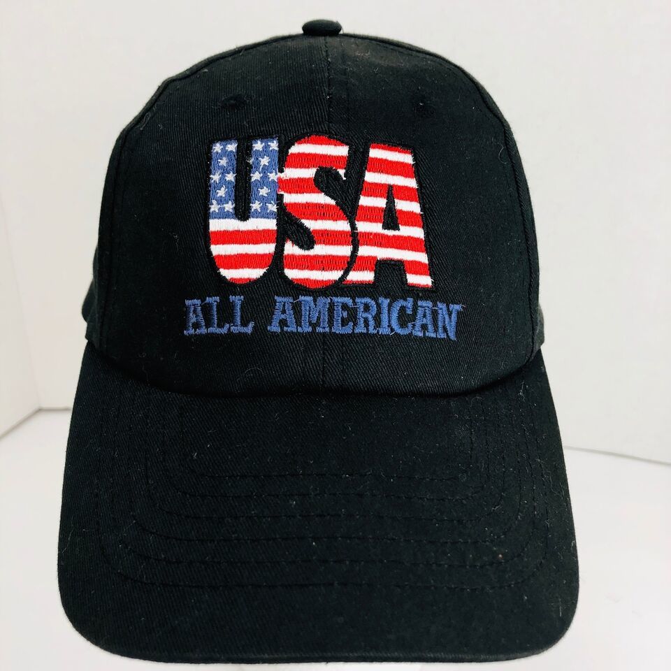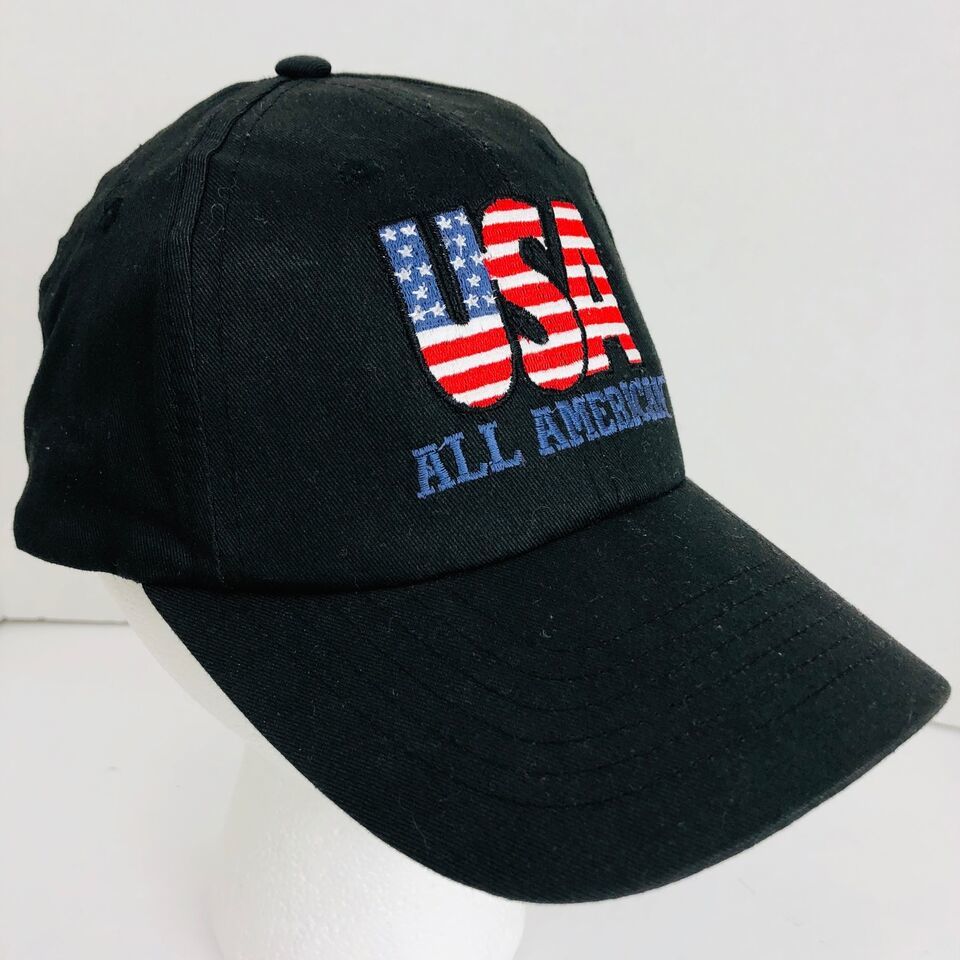 USA All American Black Baseball Hat Flag Patriotic Adjustable Back