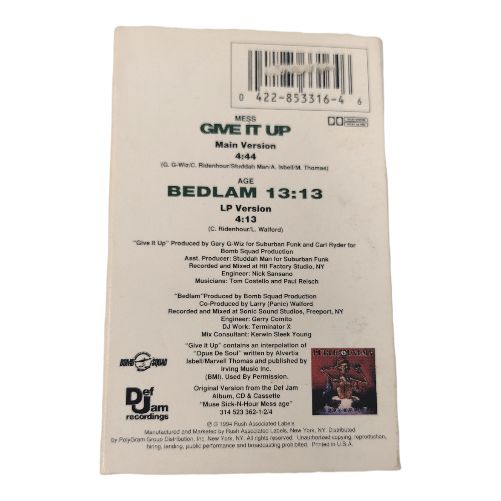 Give It Up EP [Single] by Public Enemy (Cassette, 1994, Def Jam)
