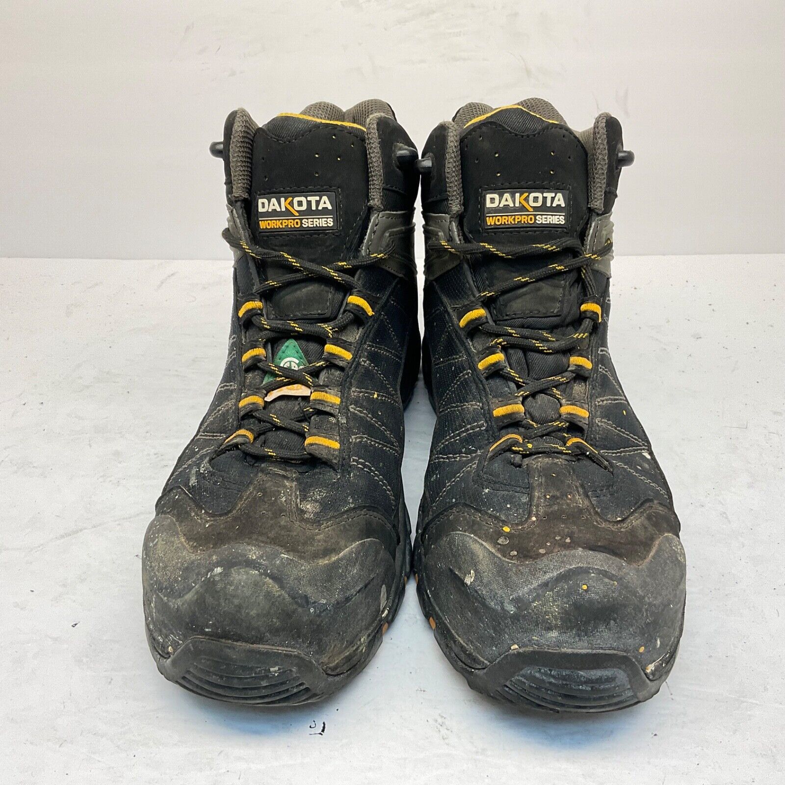 DAKOTA Men's Mid-Cut Quad Comfort Steel Toe Work Boots Black Size 8.5W/L