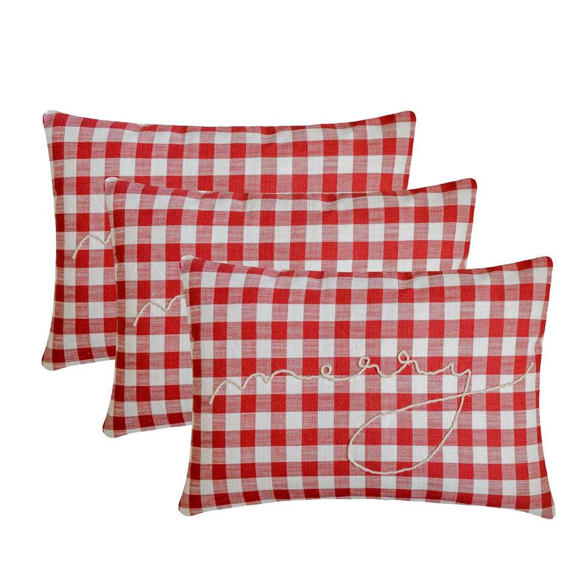 Holiday Merry - Red Cotton Christmas Checkered, Merry Lumbar Pillow Cover