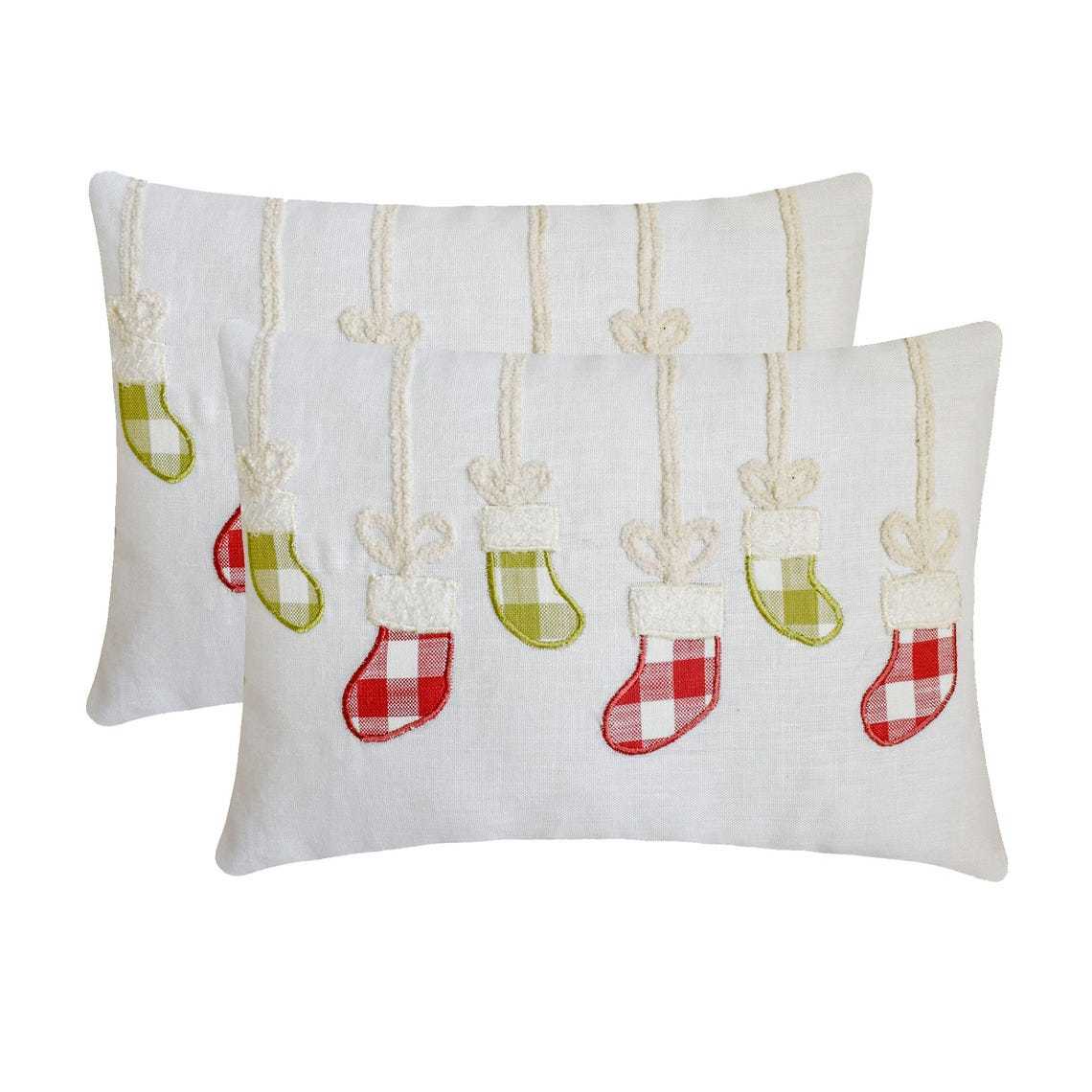 Jolly Stocking - Red Cotton Christmas Decor Lumbar Pillow Cover