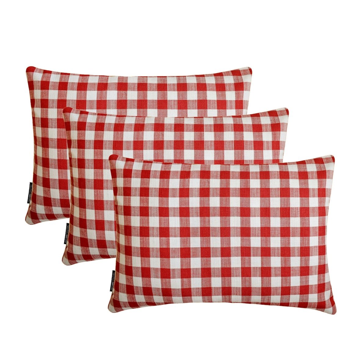 Grid Loom Red - Red Cotton Holiday Dcor Lumbar Pillow Cover