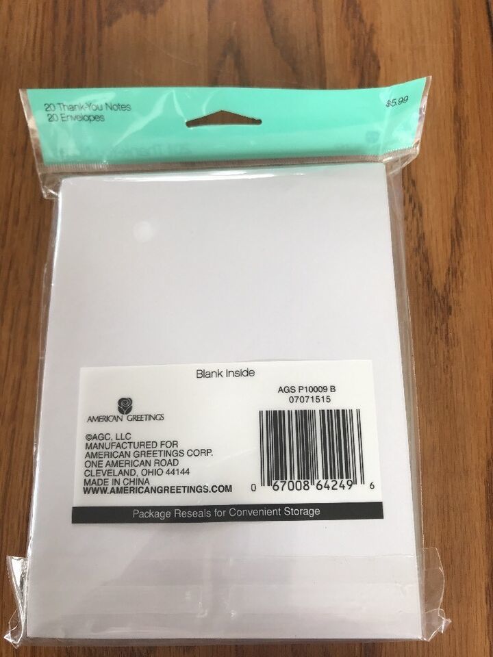 American Greetings 20 Count Thank-You Notes Blank Inside Ships N 24h