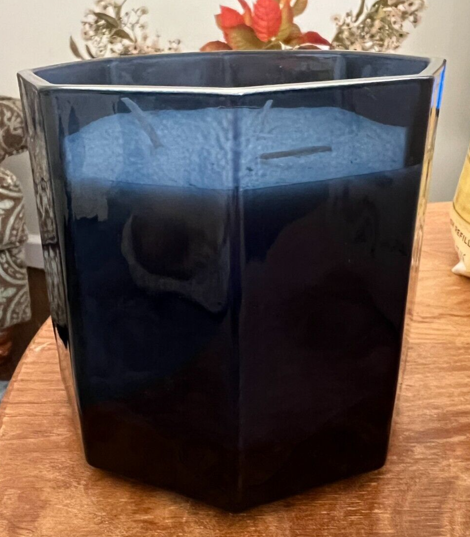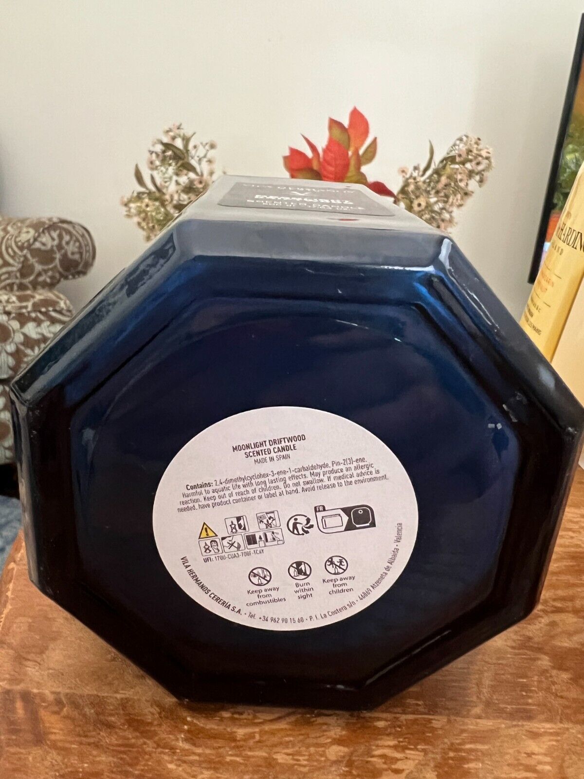 Vila Hermanos Moonlight Driftwood Octagon Cobalt Blue Glass Jar Candle 17.64 Oz