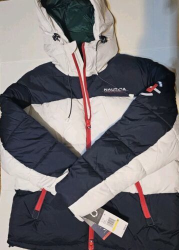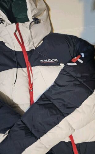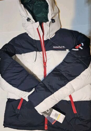 Vintage Nautica Stripe Colorblock Logo Reversible Puffy Down Jacket Size M 20s