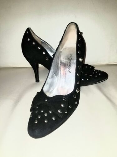 Dolce And Gabbana Black Suede Bow Studded Stilettos Heels Pumps 37.5 D&G