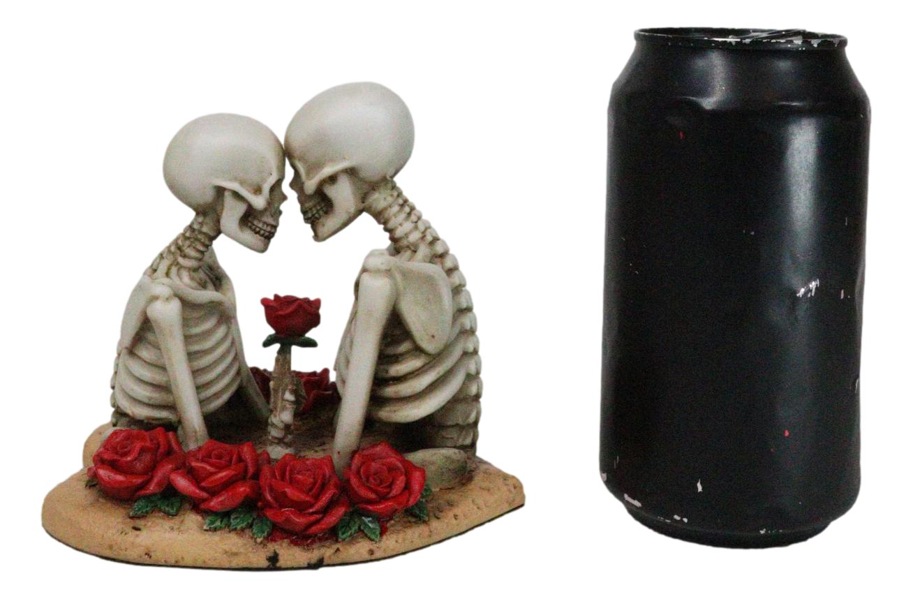 Love Never Dies Skeleton Couple Holding A Stalk of Rose Figurine Cake Topper