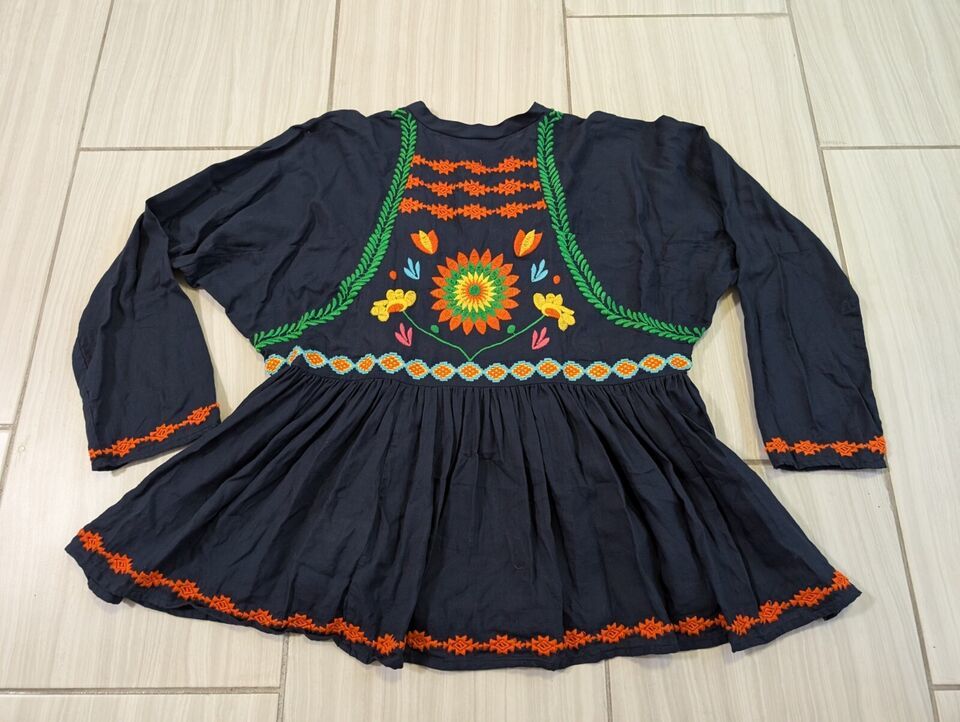 Frances Valentine Embroidered Tie-front Blouse - women's shirt medium - colorful