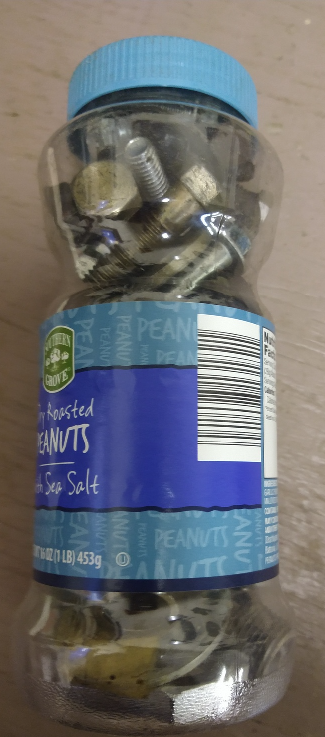 IN A PEANUT CONTAINER. MAY ALSO HAVE SMALL TOOLS, ALLEN WRENCHS, ETC. SOLD AS-IS NO RETURN.