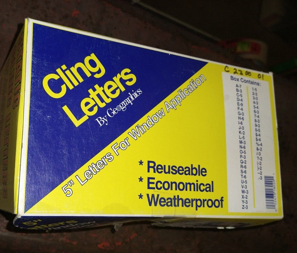 USED!! GEOGRAPHICS 5" REUSABLE WINDOW LETTER AND NUMBER KIT, FREE SHIPPING US!!