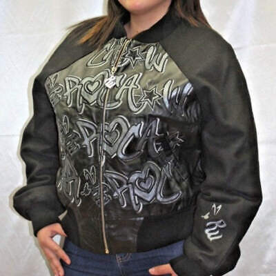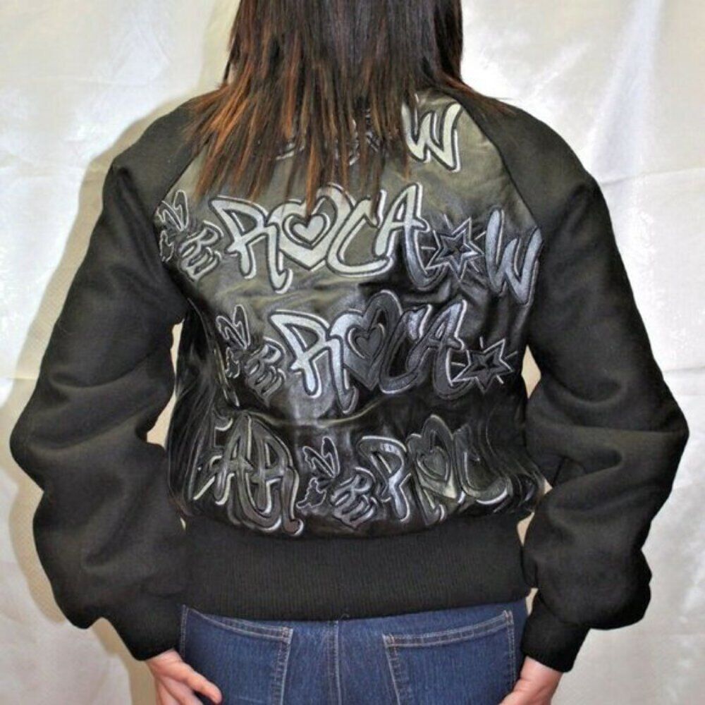 Women's Rocawear Black | Grey All Over Wool Leather Jacket NWT