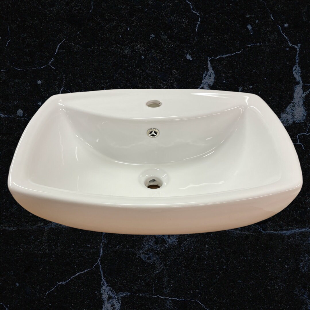 21" White Ceramic Rectangular Vessel Above Counter Sink with overflow