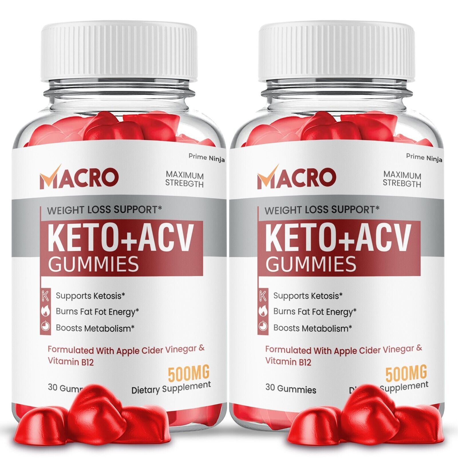 2 Pack Macro Keto ACV Gummies Max Strength with Apple Cider Vinegar.