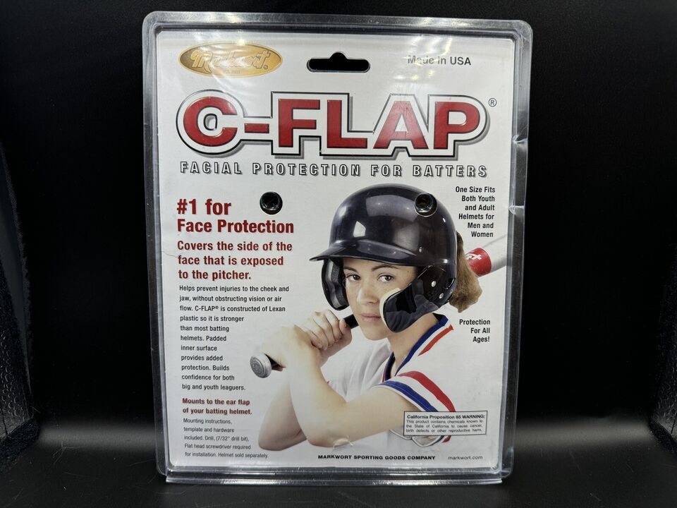This Markwort C-FLAP Right Handed Batter Jaw Cover Black RHB-B Baseball Softball helmet is the perfect addition to any baseball player's gear. Designed for maximum protection, this open face helmet is made with high-quality materials to ensure durability and longevity. The helmet is sized to fit most players and comes in a sleek black color that is sure to turn heads on the field.