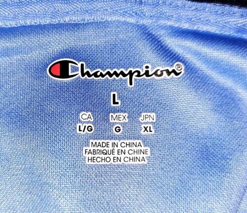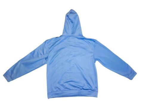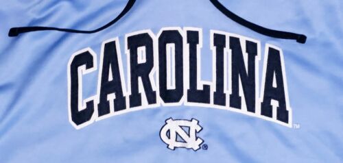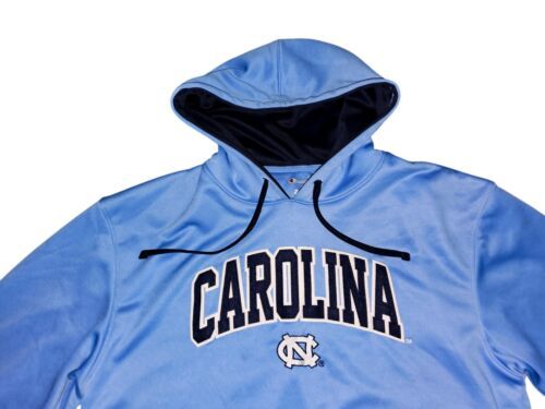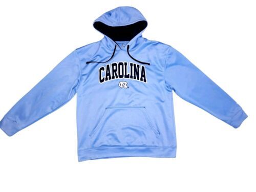Show your support for the North Carolina Tar Heels with this officially licensed Champion hoodie. The blue hoodie features an embroidered design of the team's logo and is made of a comfortable blend of cotton and polyester. It's perfect for football or basketball season and is available in a men's size L. The hoodie is made in China and is a great addition to any fan's collection.