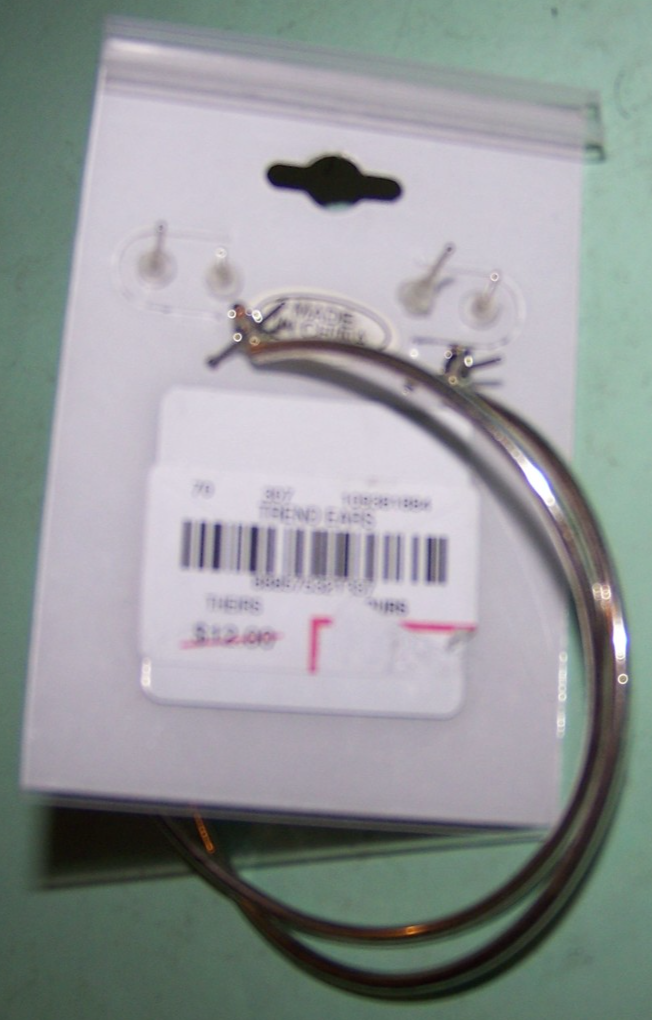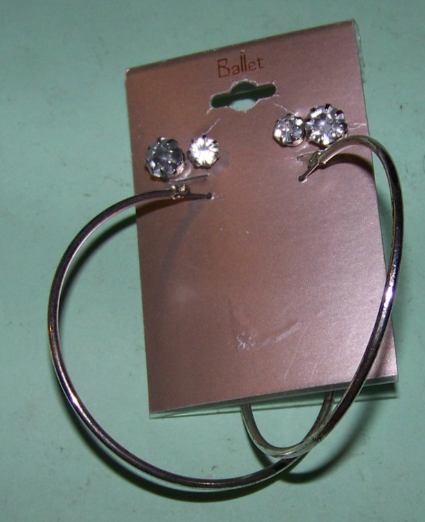 MEASURES ABOUT 2 3/8" ACROSS. WITH A SWAROVSKI CRYSTAL. NO PACKAGING. 3-PC EARRING SET IS BY TREND EARS AND MADE IN CHINA. ITEMS MAY HAVE SMALL SCRATCHES AND IMPERFECTIONS BEING THAT THEY ARE NOT IN SEALED PACKAGES. ALL SOLD AS-IS NO RETURN.
