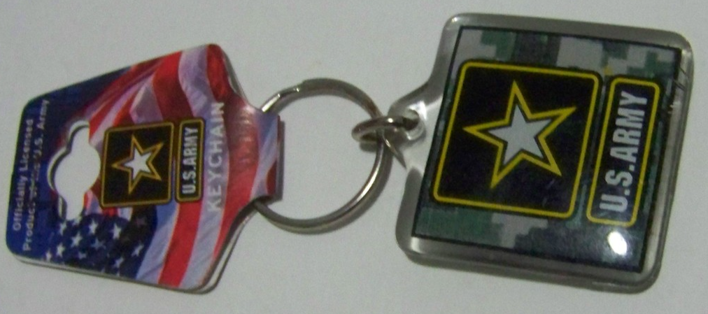 THIS LISTING IS FOR 1 KEYCHAIN, YOU NEED TO SPECIFY WHICH ONE YOU WOULD LIKE, IF ARMY I NEED TO KNOW IF IT'S THE YELLOW OR THE GREEN. ALL SOLD AS-IS NO RETURN.