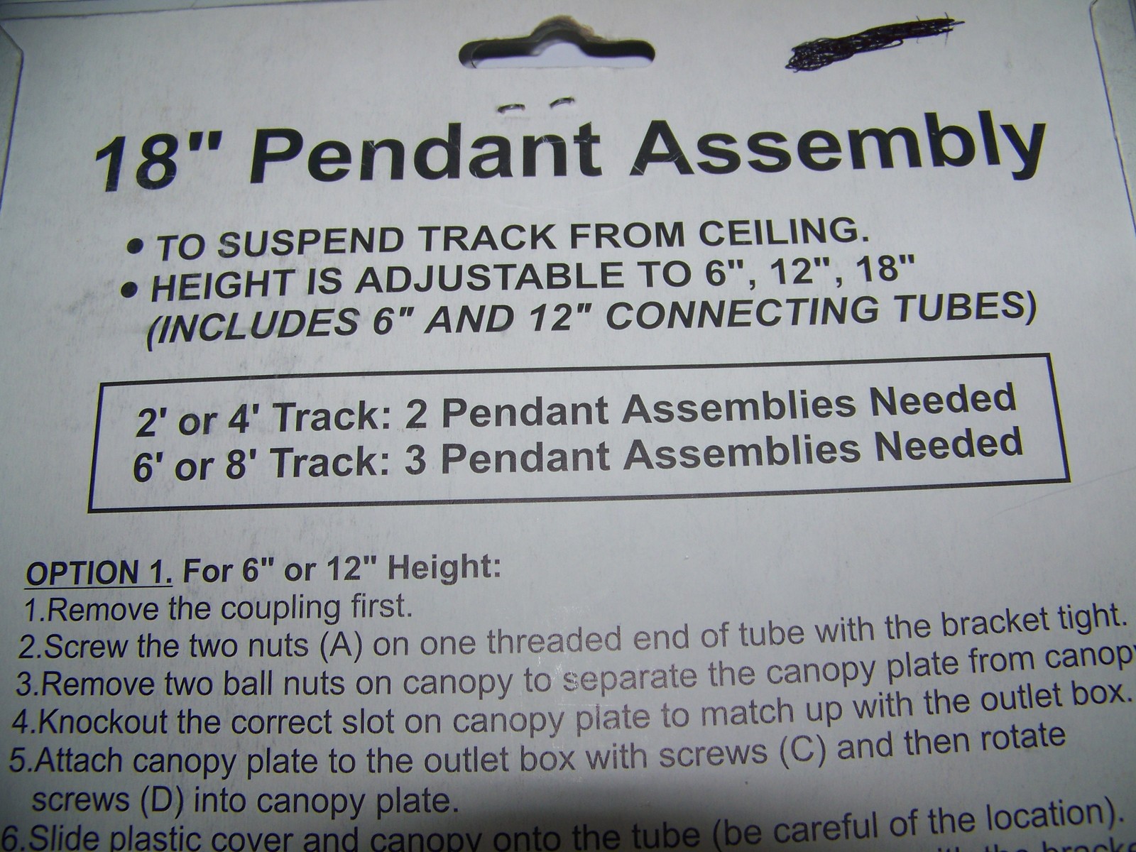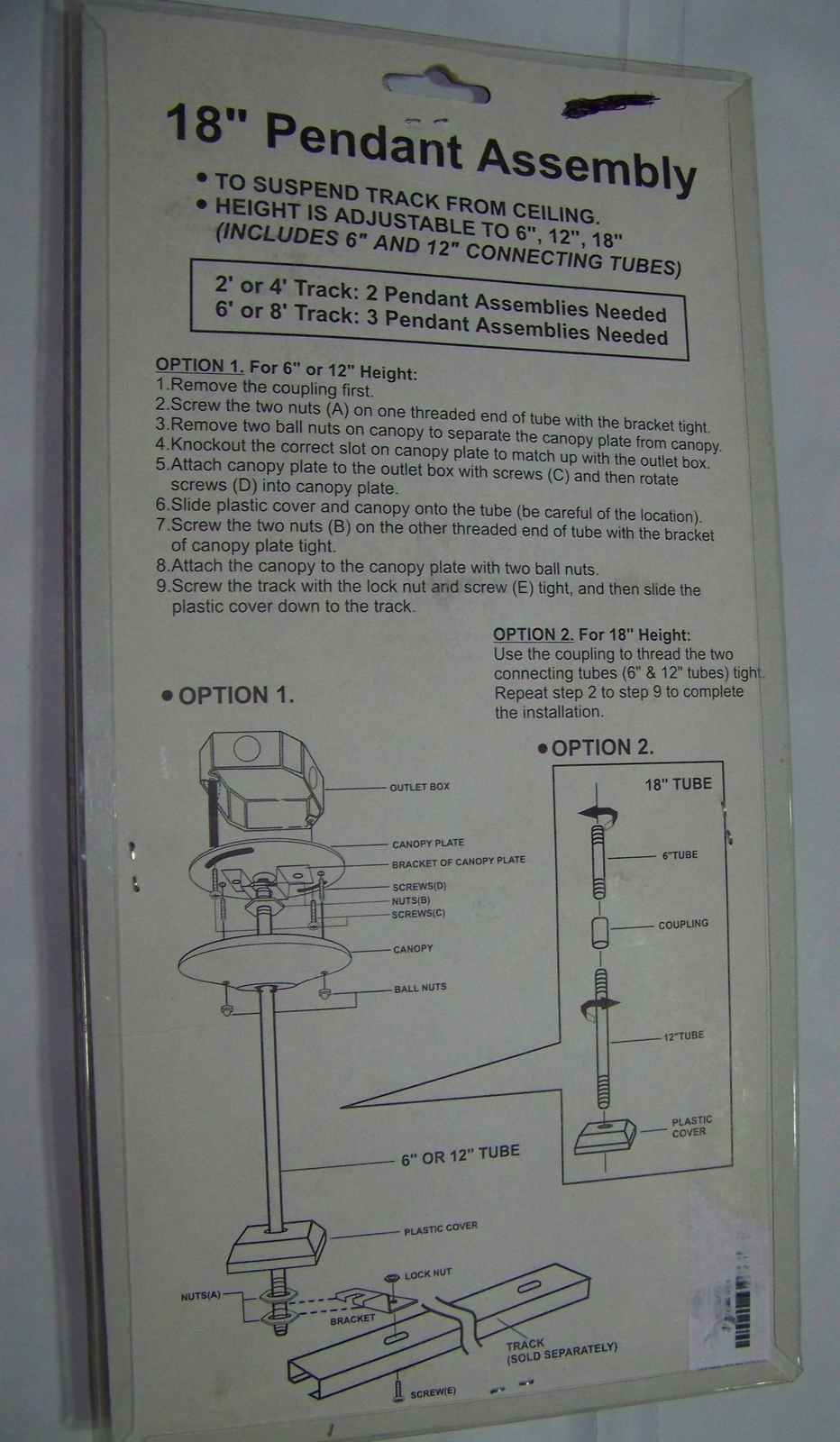 NEW!! Quantus Lighting 18" Pendant Assembly for a Track Light System