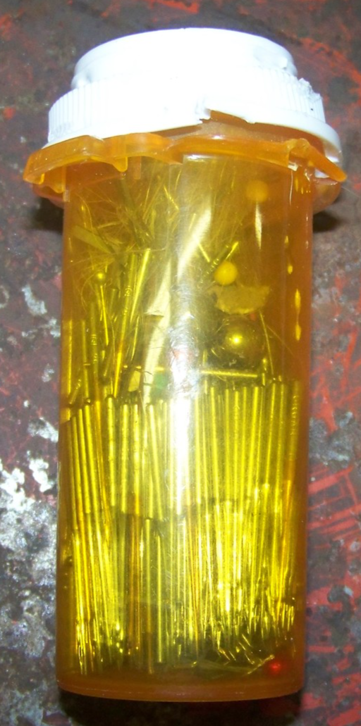 FROM COMMERCIAL MULTIHEAD MACHINES, BERUDAN ETC. 2ND BOTTLE MOSTLY PINS. SOLD AS-IS NO RETURN.