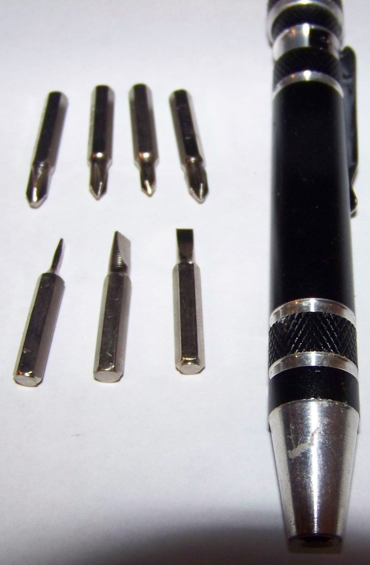 SEE PICS, SOME COROISSION FROM STORAGE. MAGNET HOLDS BITS IN PLACE, BITS STORED INSIDE UNIT. 4 PHILLIPS AND 3 STRAIGHT. SOLD AS-IS NO RETURN.