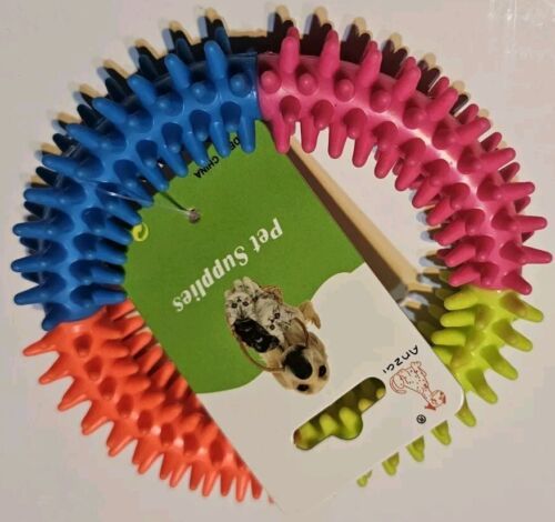 This Anzgi Pet Suppliers 4.5" Multicolor Dog Ring Squeeky Toy is the perfect addition to your furry friend's playtime. The toy is made of high-quality rubber material and features a squeaky sound that will make your dog go wild. It is suitable for small-large dog sizes and is designed to look like a bone.