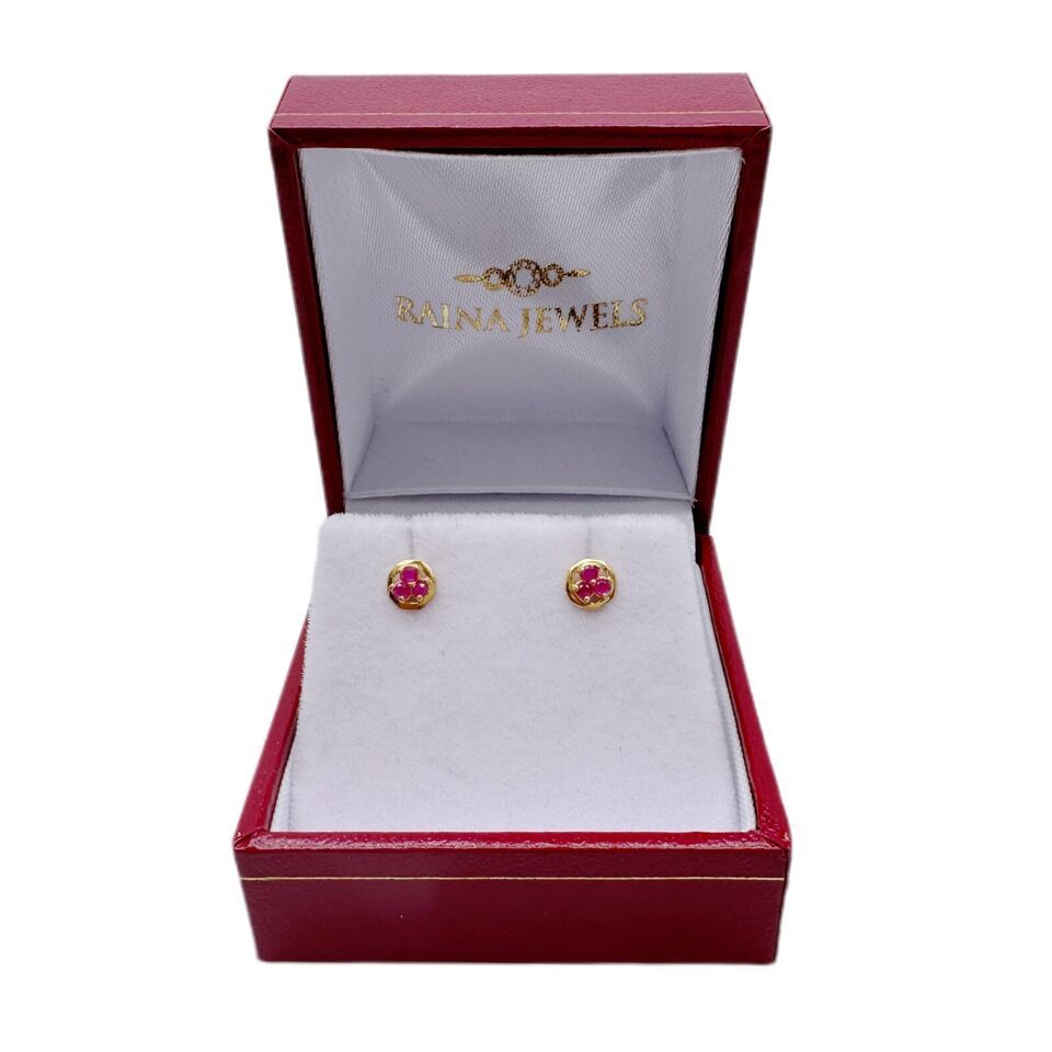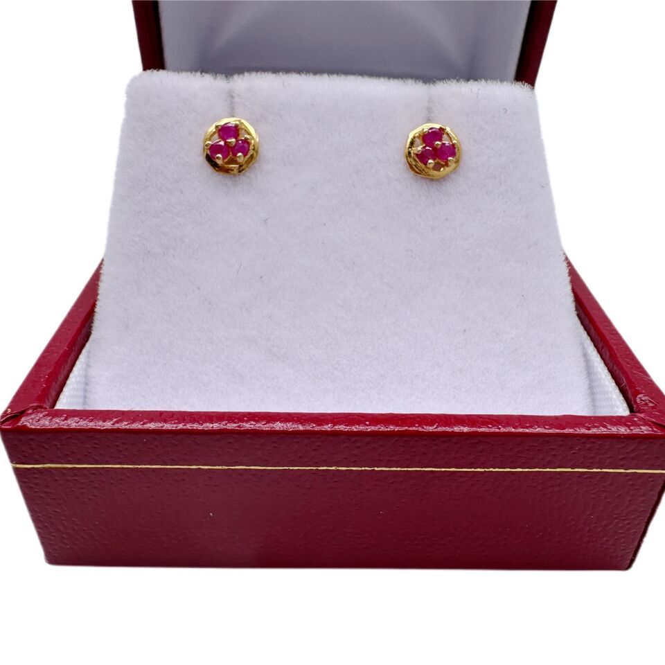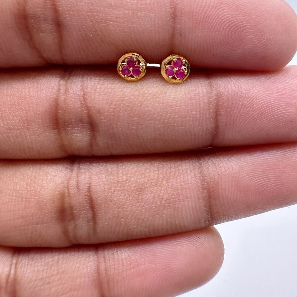 22ct Yellow Gold Three Stone Natural Ruby Tiny Stud Earrings