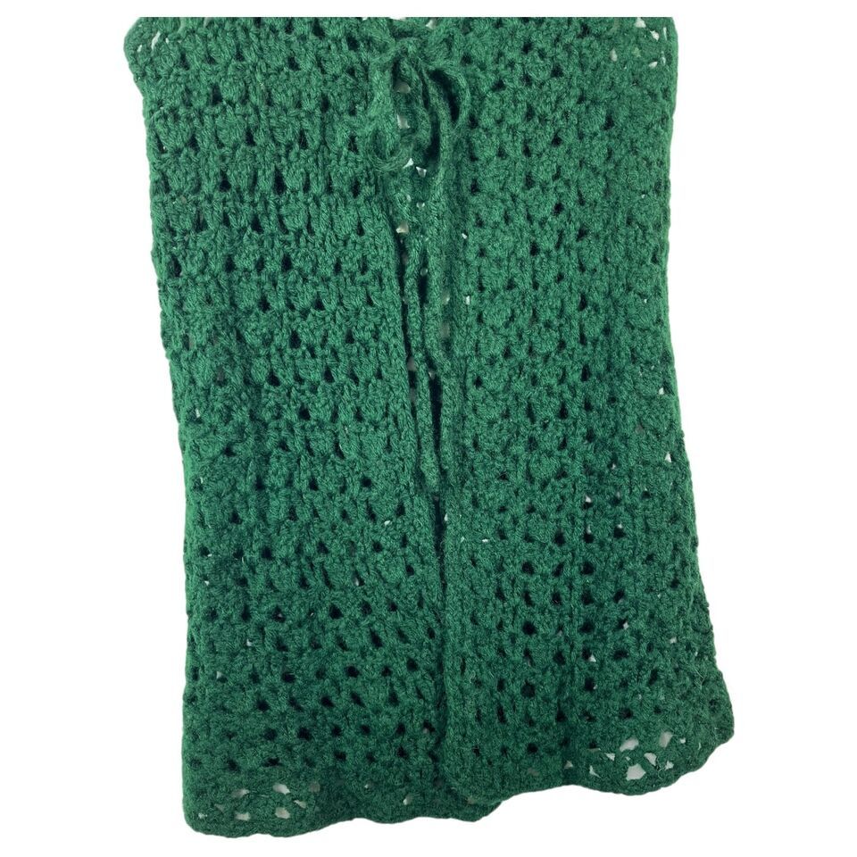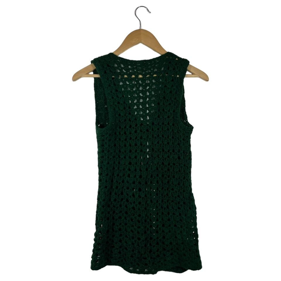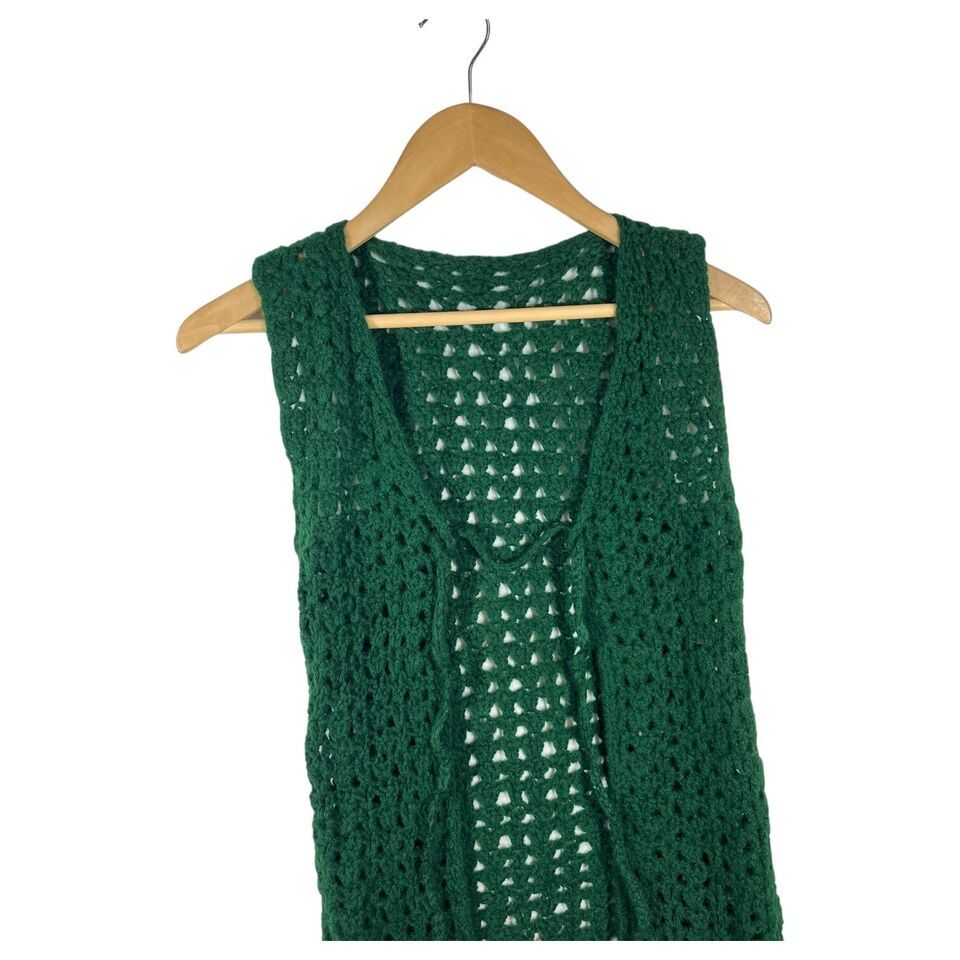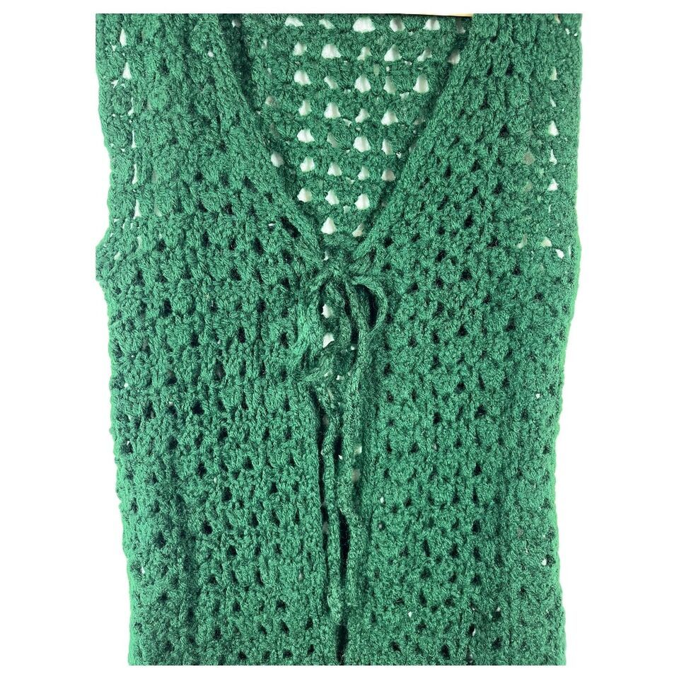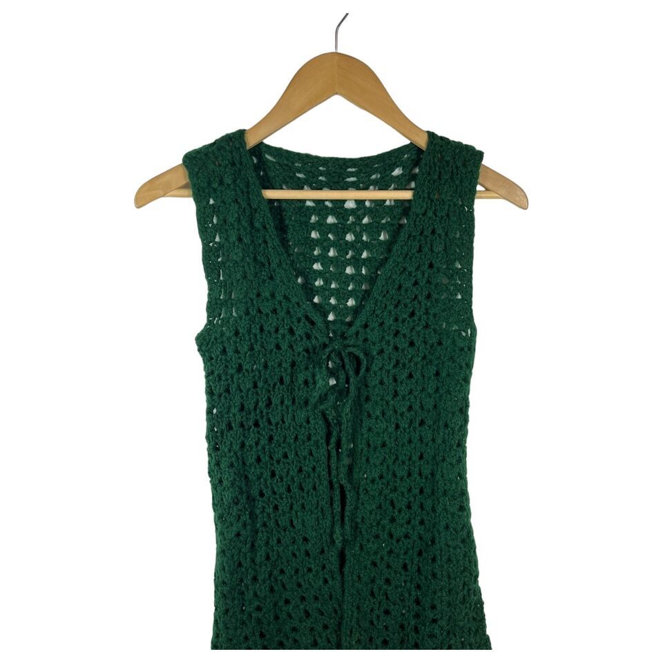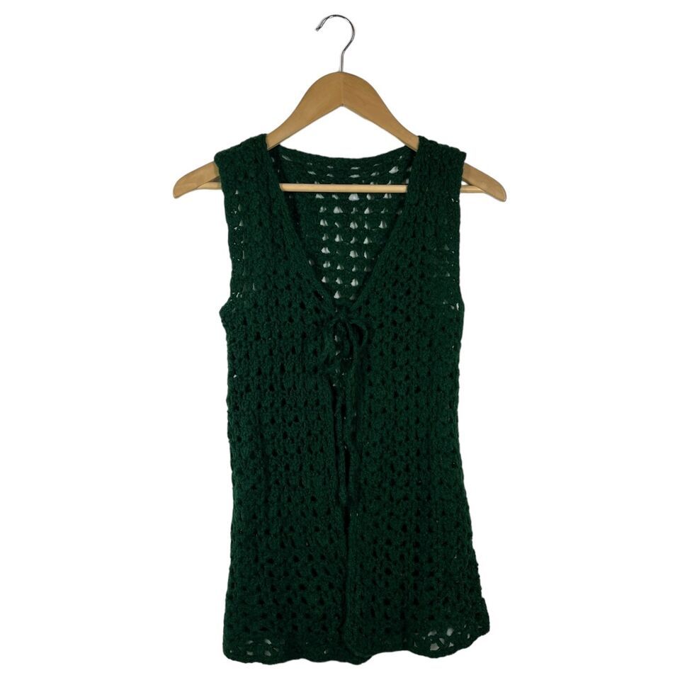 Handmade Crochet Sweater Vest Women's Grannycore Grandma Vibes Open Front Green